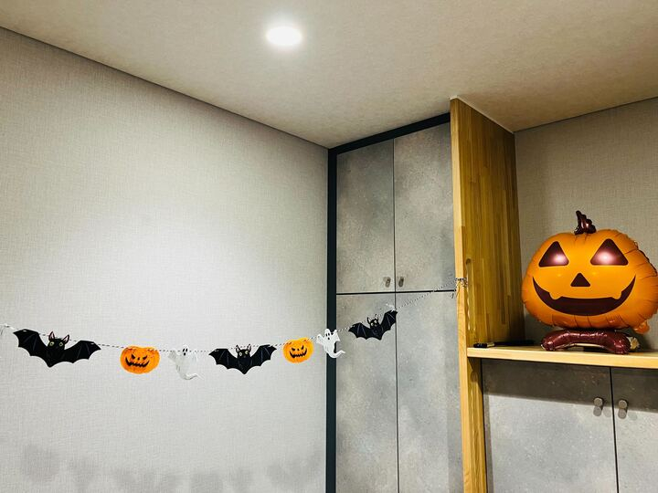 カボチャやおばけ、コウモリなど、にぎやかで楽しい飾り付けで皆さまをお迎えしています♪