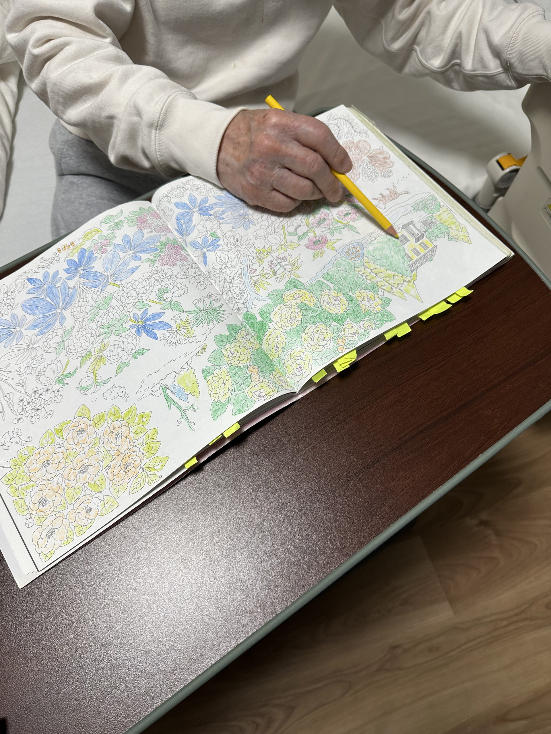 今日は、ご利用者様が取り組まれている素敵な塗り絵をご紹介します。