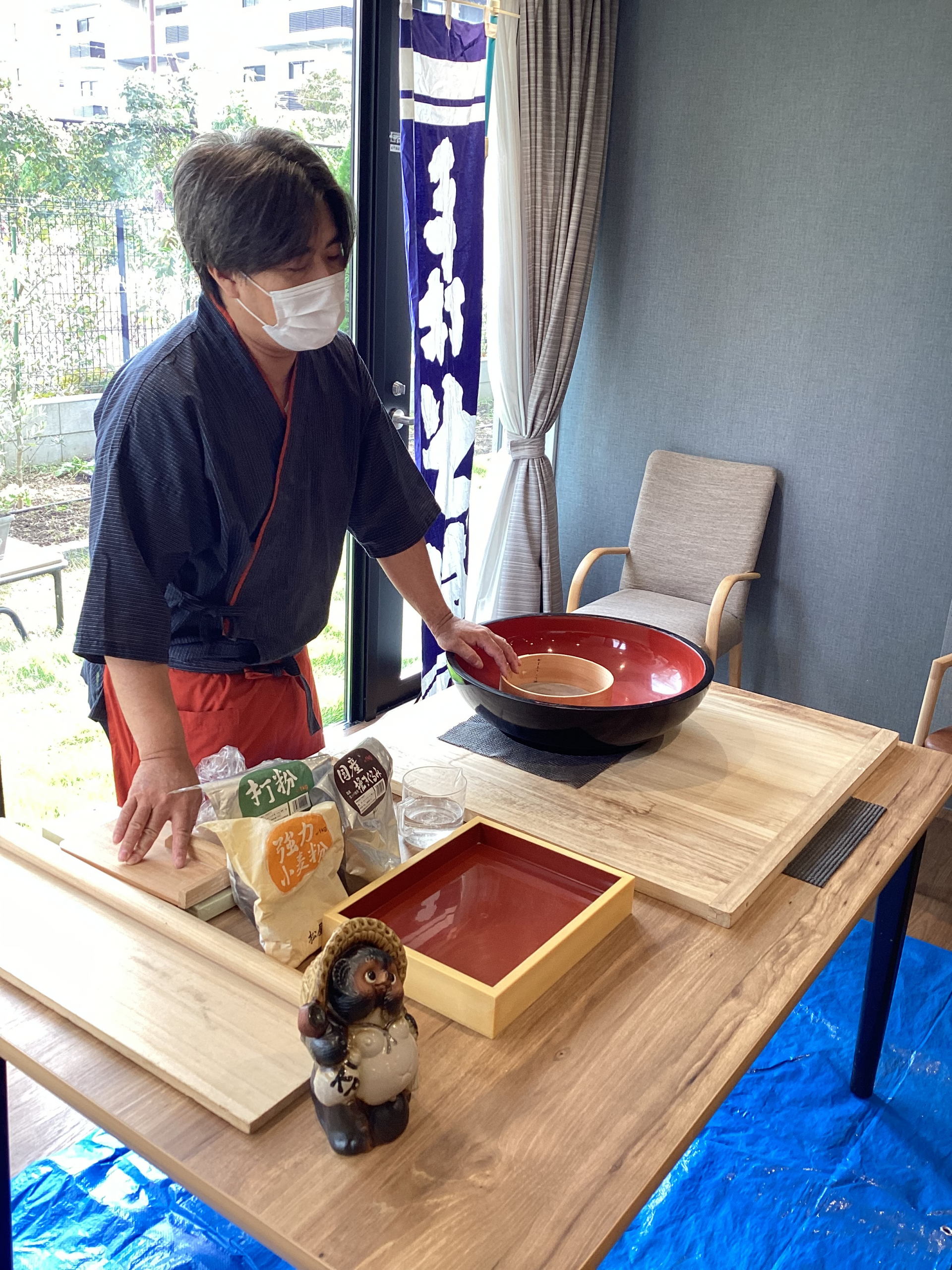 本日は、弦巻の家では初となる、蕎麦職人さんによる蕎麦打ち実演&体験を開催しました。