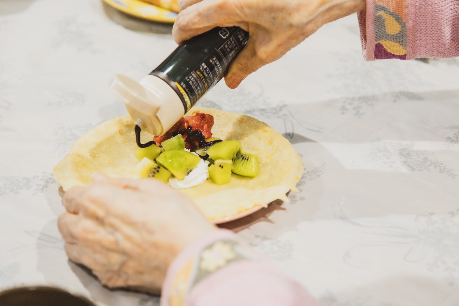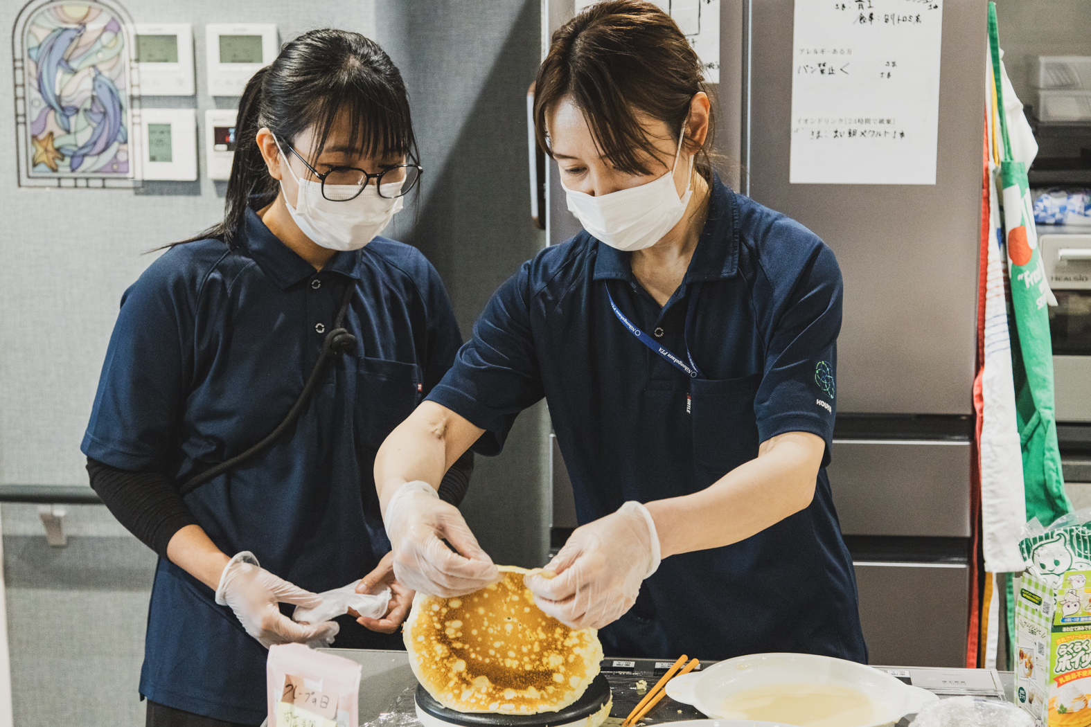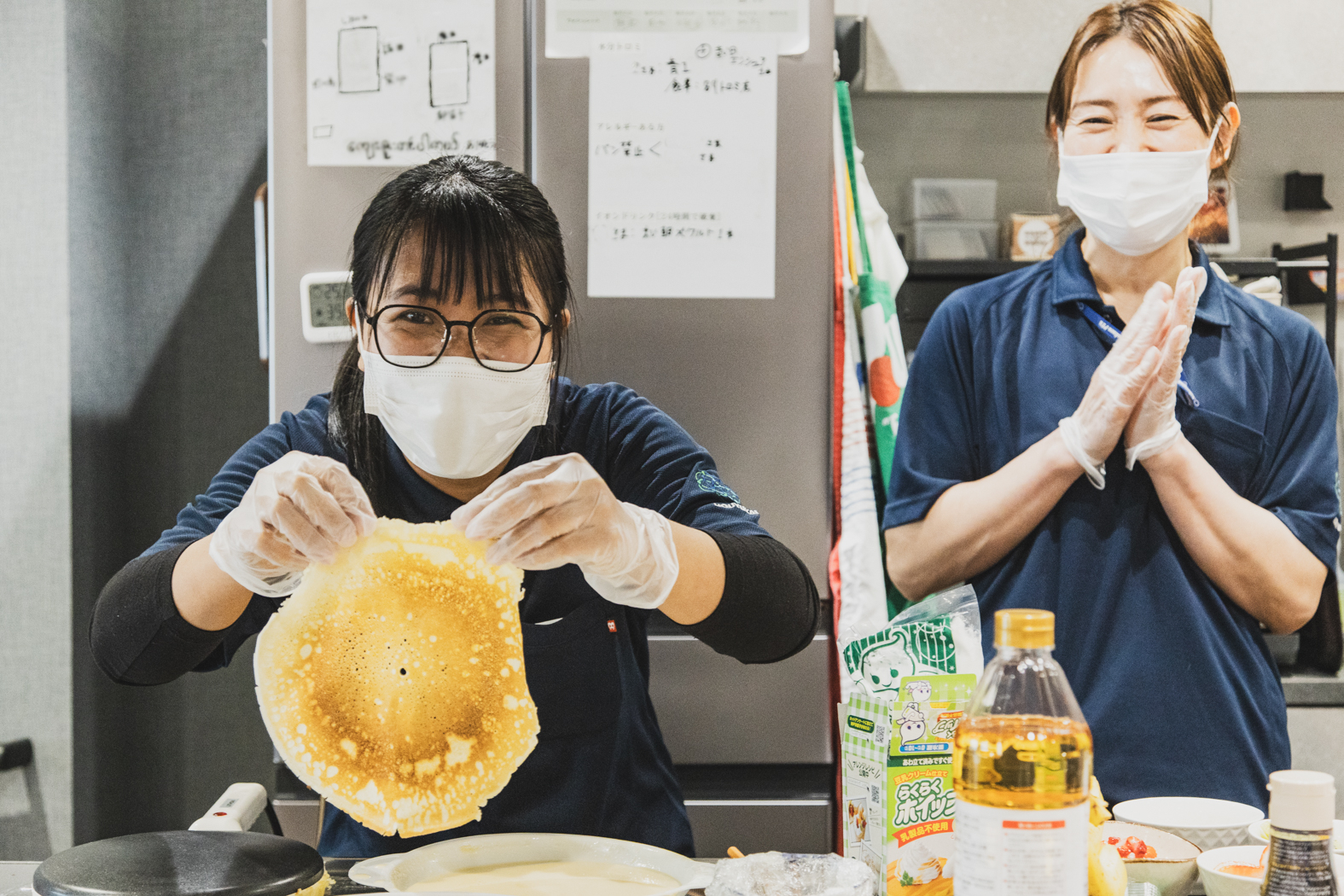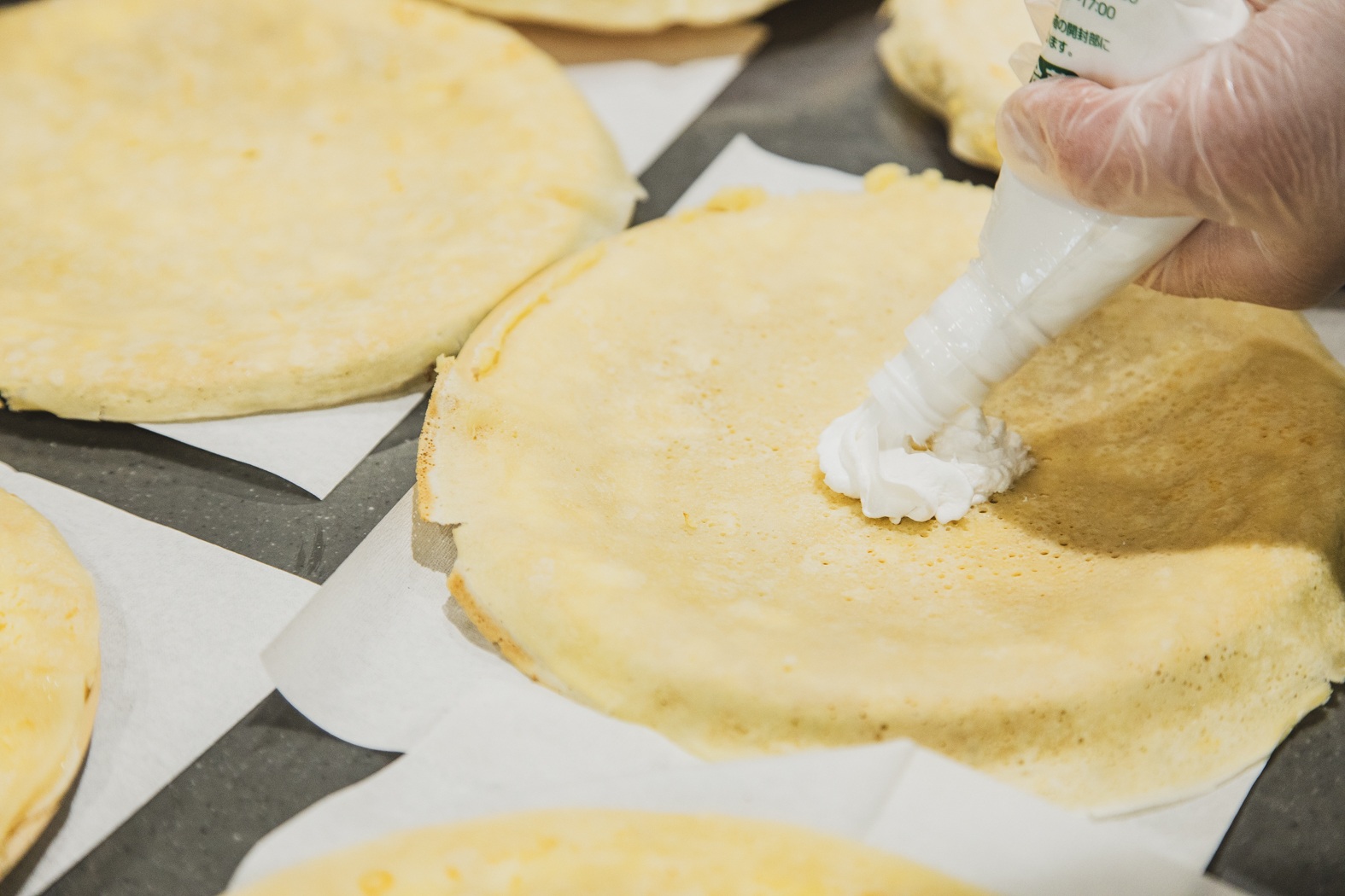 生地は職員たちが焼いてクレープにのせる