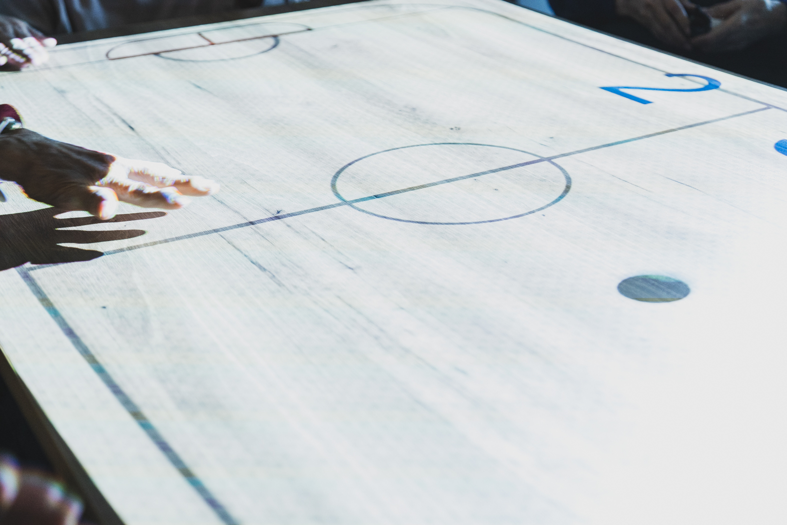 卓上にてホッケーゲームやサッカーを行いました〜!!!