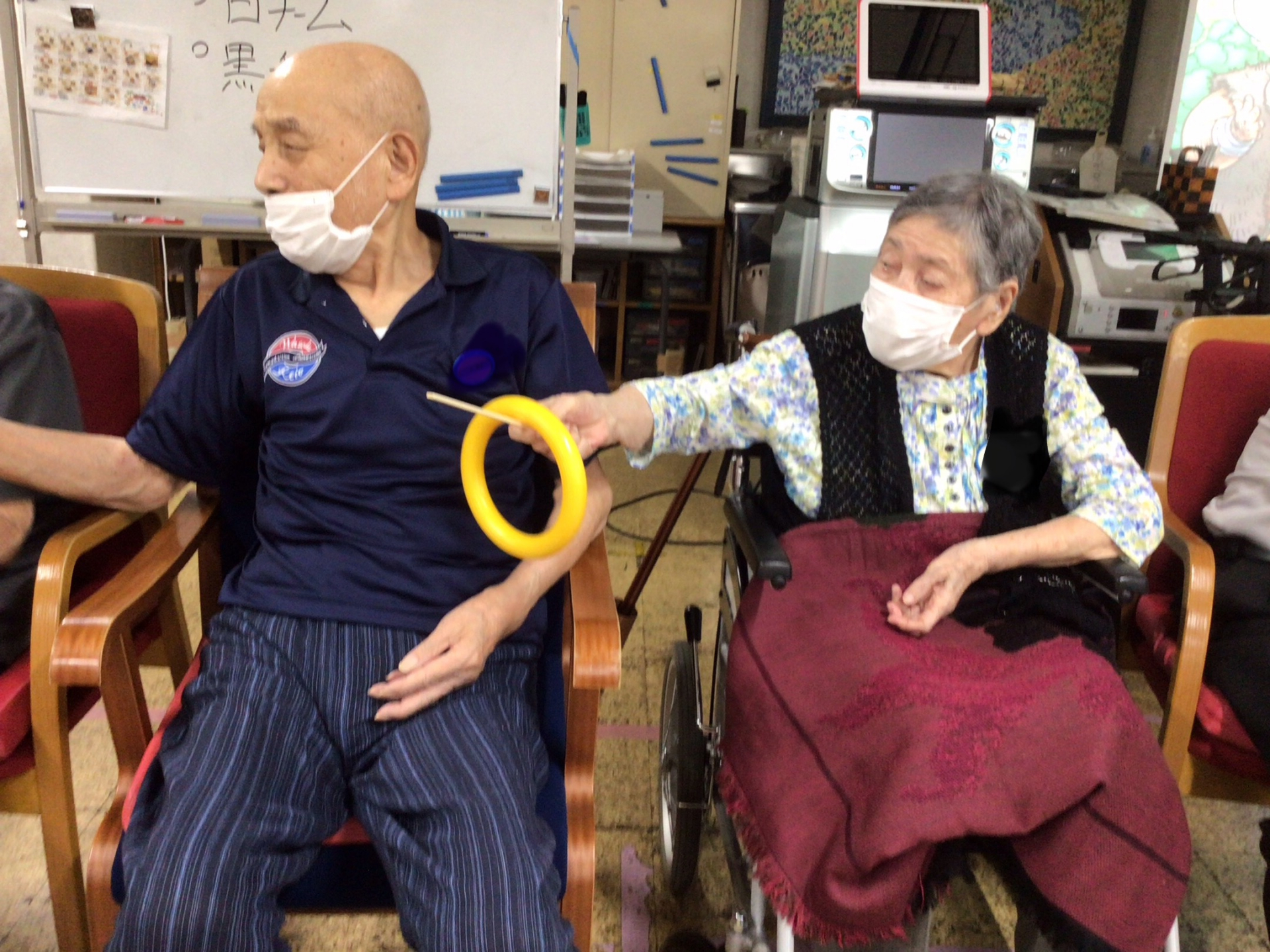 横に並んでいただき、お隣へボールや輪投げの輪などをどんどん