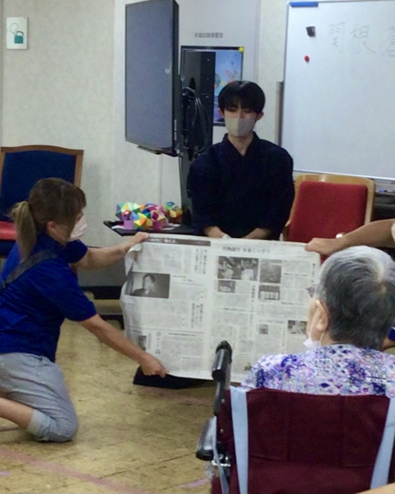 かなり緊張もあったかと思いますが、皆様が見守る中、スパッと新聞紙が真っ二つに!!歓声が上がり、拍手が!!本当にお見事でした。