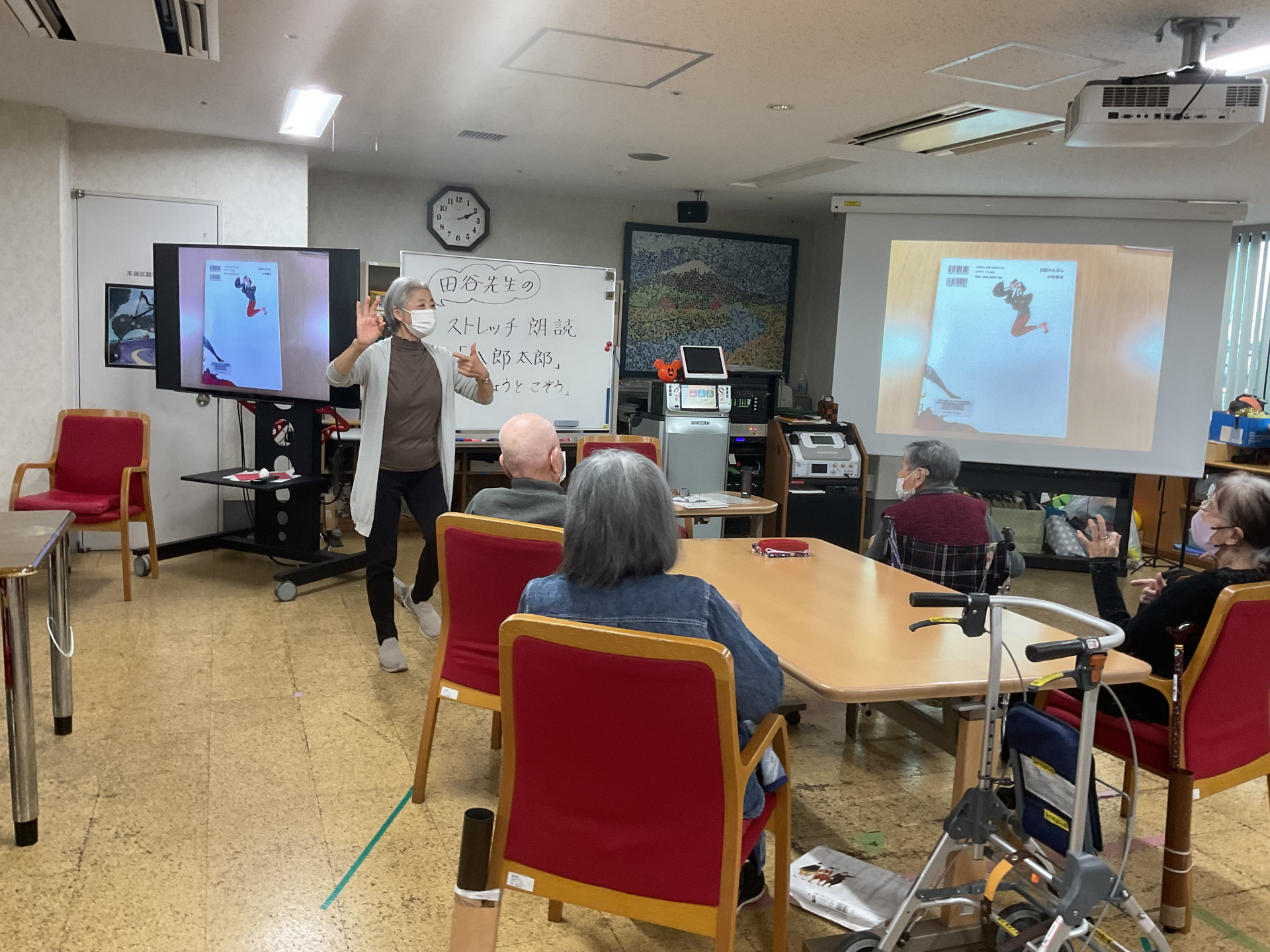 本日午後は、毎月恒例の『田谷先生によるストレッチ朗読』でした