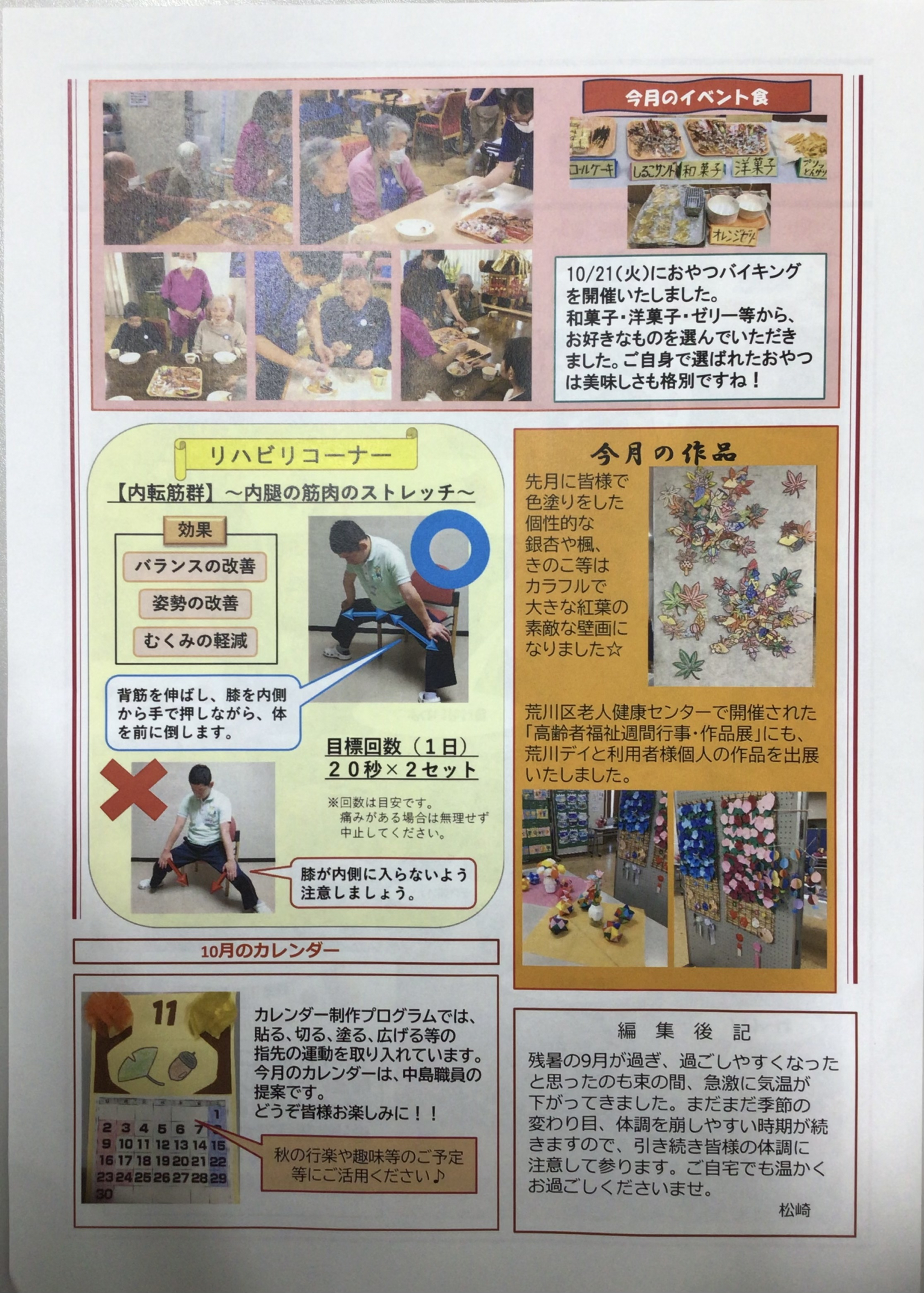 2025.11.05 デイサービス 【荒川デイ】カラフル! Tweet シェアする こんにちは 本日は、当センターの『カラフル』デイサービス通信をお届けします 先月の『ミニ運動会』や『おやつイベント』のご様子を載せています 是非ご覧ください! Arakawa day ky #デイサービス #荒川東部高齢者サービスセンター #荒川デイ #デイサービス通信 #カラフル 前の記事 2025.11.06 デイサービス 【荒川デイ】出前昼食会 次の記事 2025.11.04 デイサービス 【荒川デイ】11月ランチメニュー 一覧へ戻る