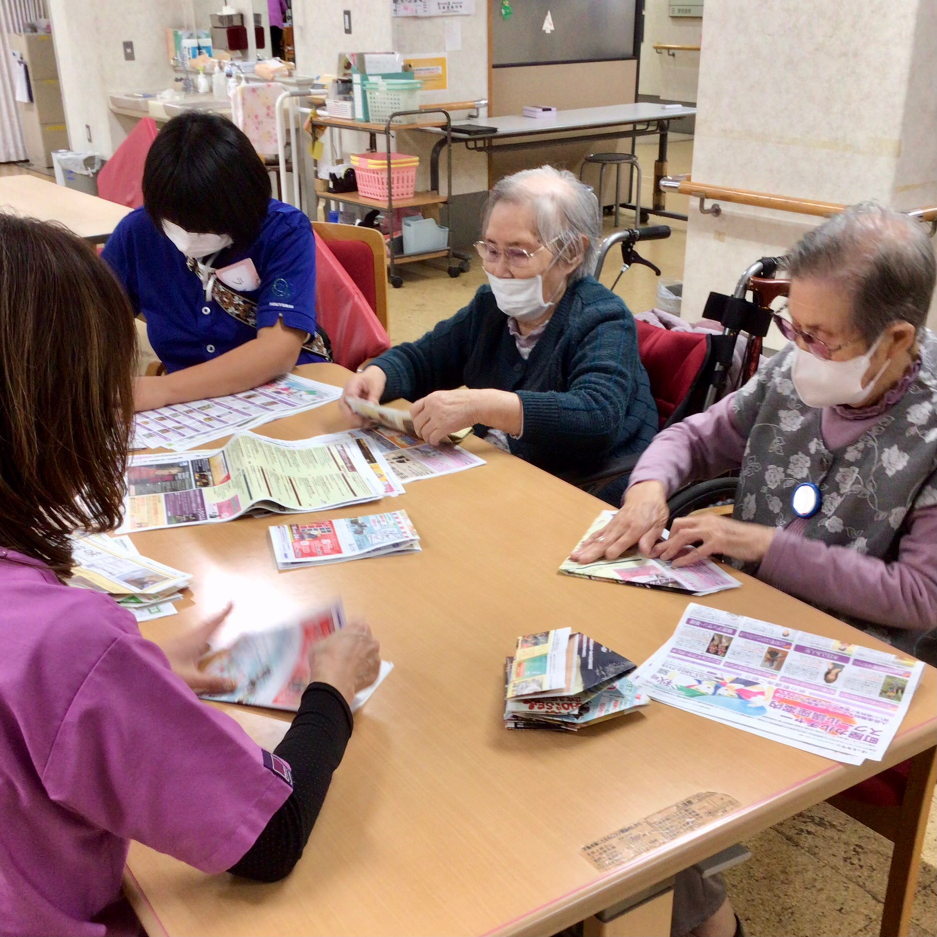 職員とコミュニケーションをとりながら、楽しそうなご様子でした。ものを折るということは手先の運動になりますが、手順を思い出す事でも脳を使いますので、一石二鳥ですね。