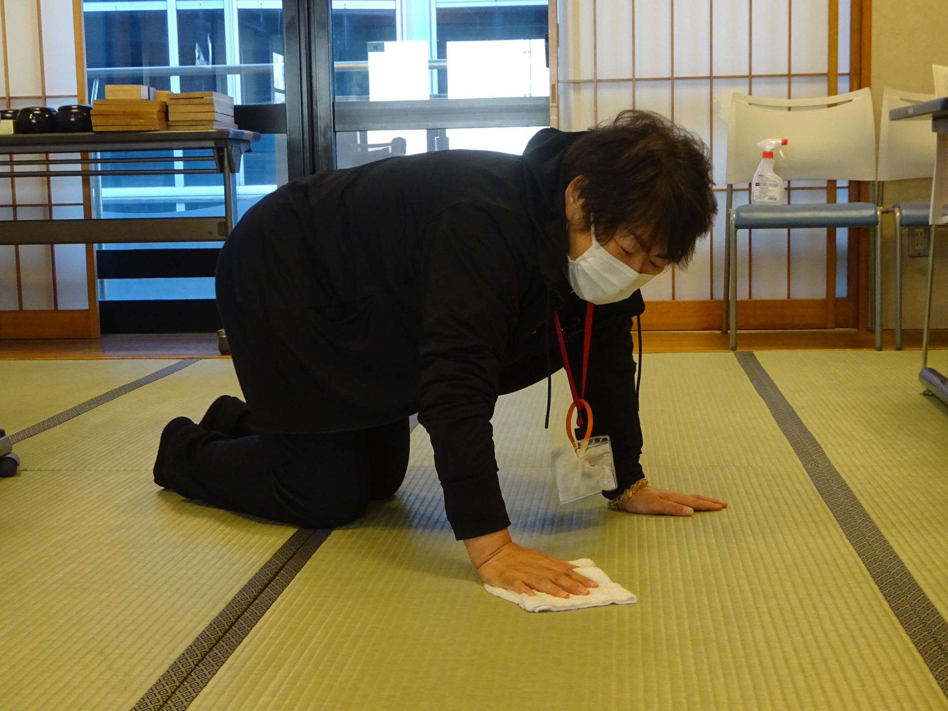 皆さまに気持ち良く過ごしていただけるように、心を込めて畳拭き致しました。