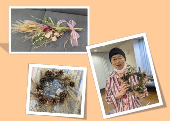 お話をしながら、クリスマス&お正月のリースとスワッグを作っていきます。