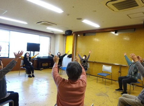 年が明けてから何日か経ちますが、皆さんで新年のご挨拶をし、「ばんざい体操」スタートです!!