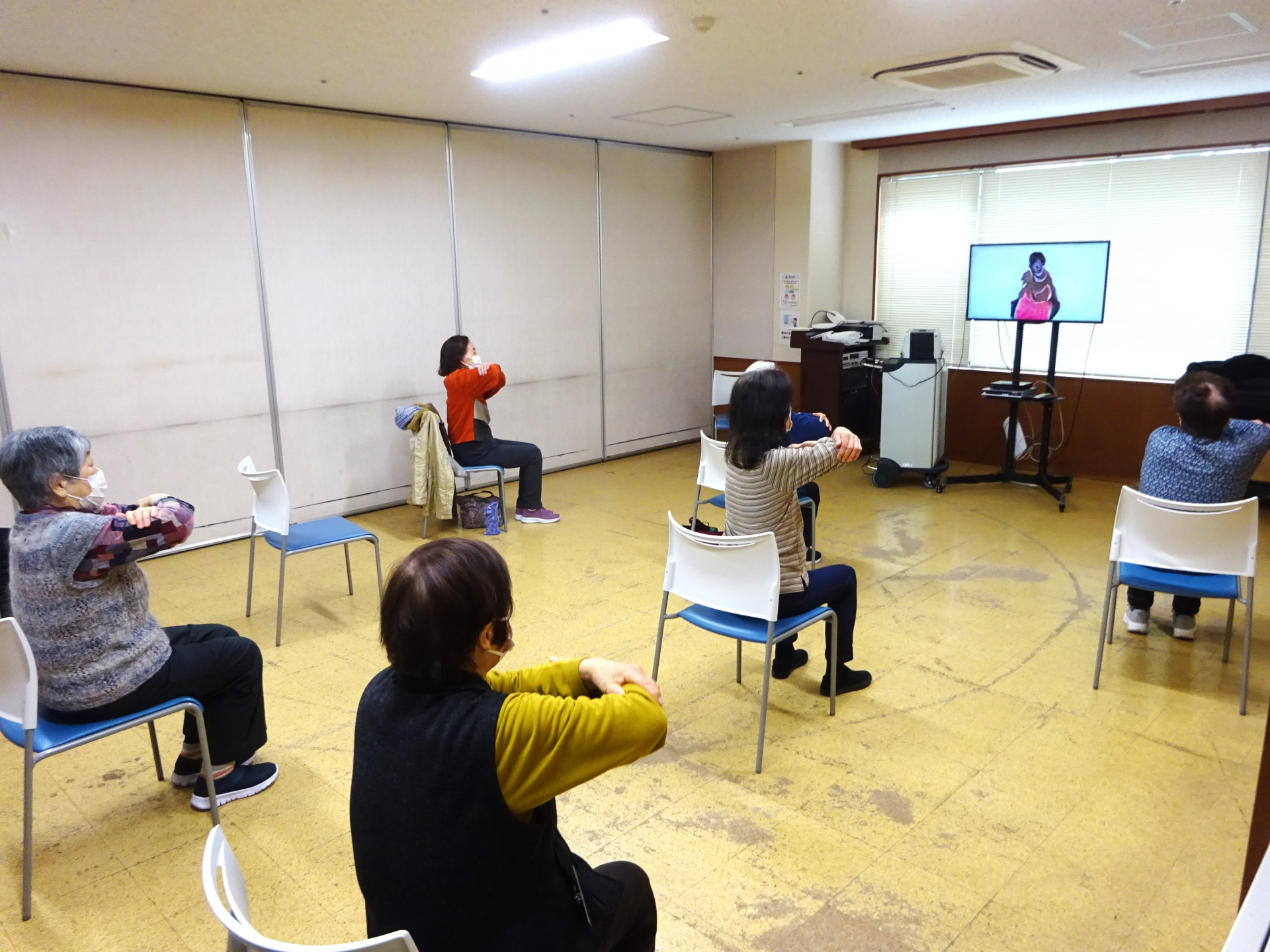TV画面を見ながらストレッチ、筋力トレーニング、転倒予防体操、ロコモ予防体操、