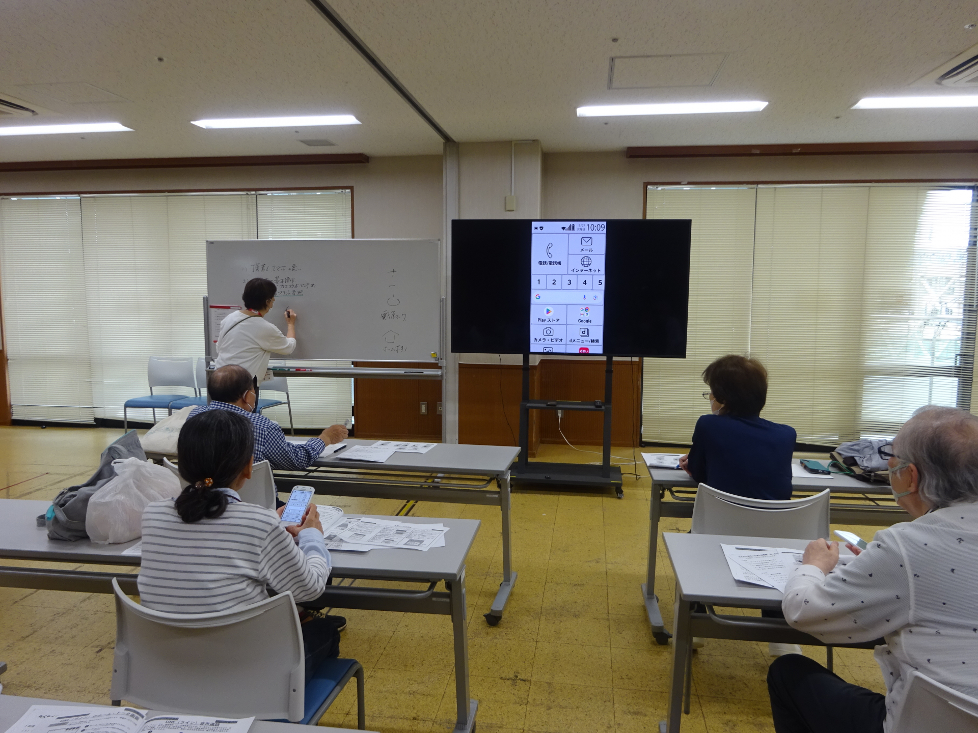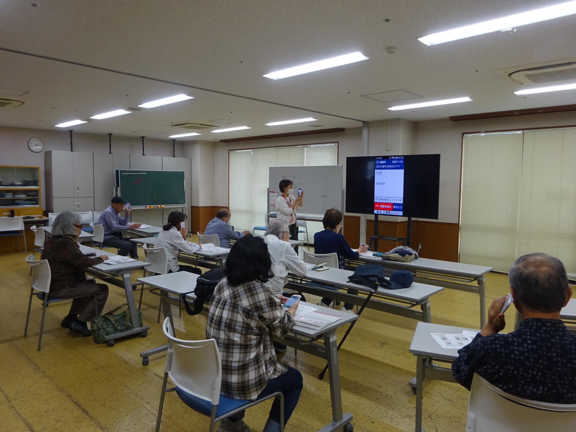 今回の講座の内容は電源の入れ方や電話のかけ方から、LINEでの写真の送り方など。