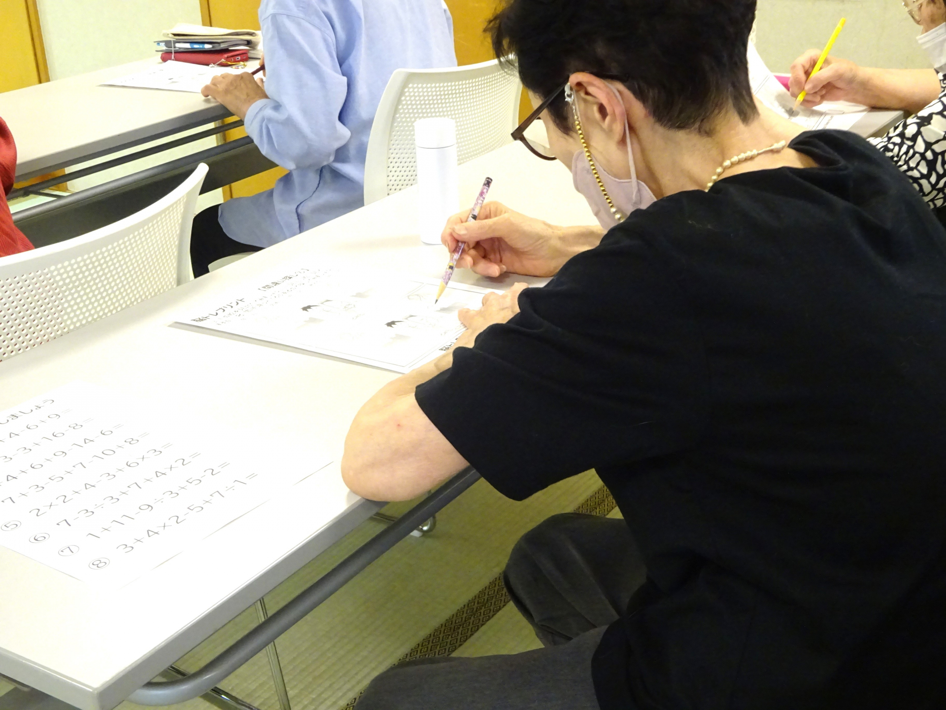 今日、用意した脳トレ問題は漢字問題(部首入れ)、計算問題、まちがい探し、絵つなぎ問題、ひらがな並び替えの5つです