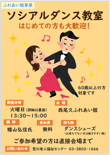 西尾久ふれあいにて『ソシアルダンス教室』を開催中です!