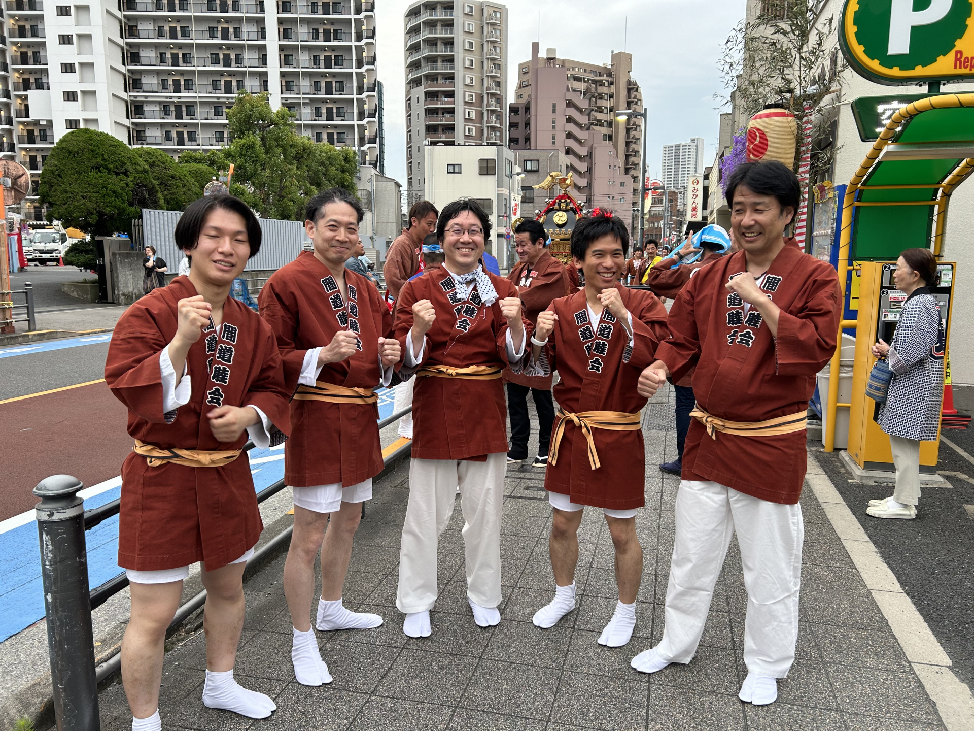 荒川老人福祉センター・東部デイ・東日暮里デイの職員総勢5名がお神輿を担ぎました!