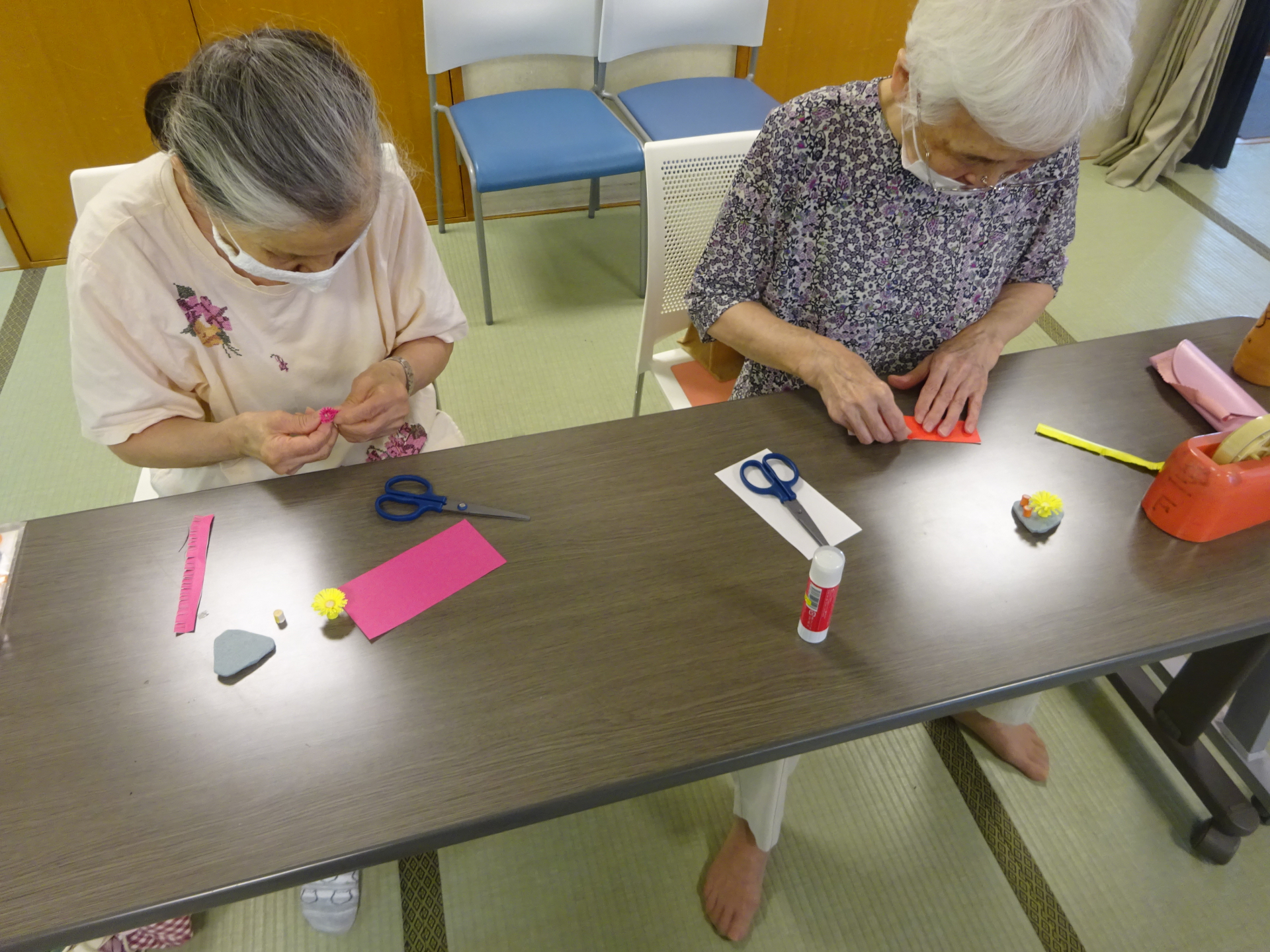 先日は、6月の折り紙教室「お花のブローチ」が行われました。