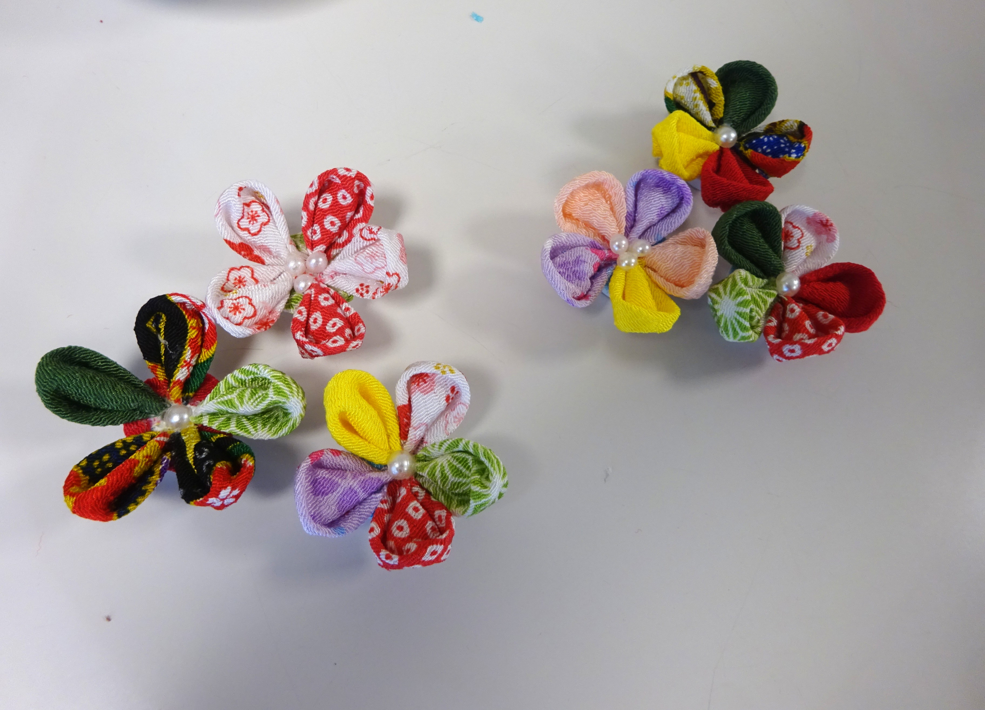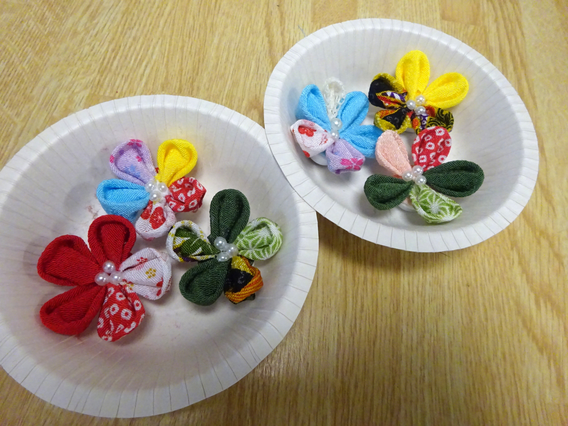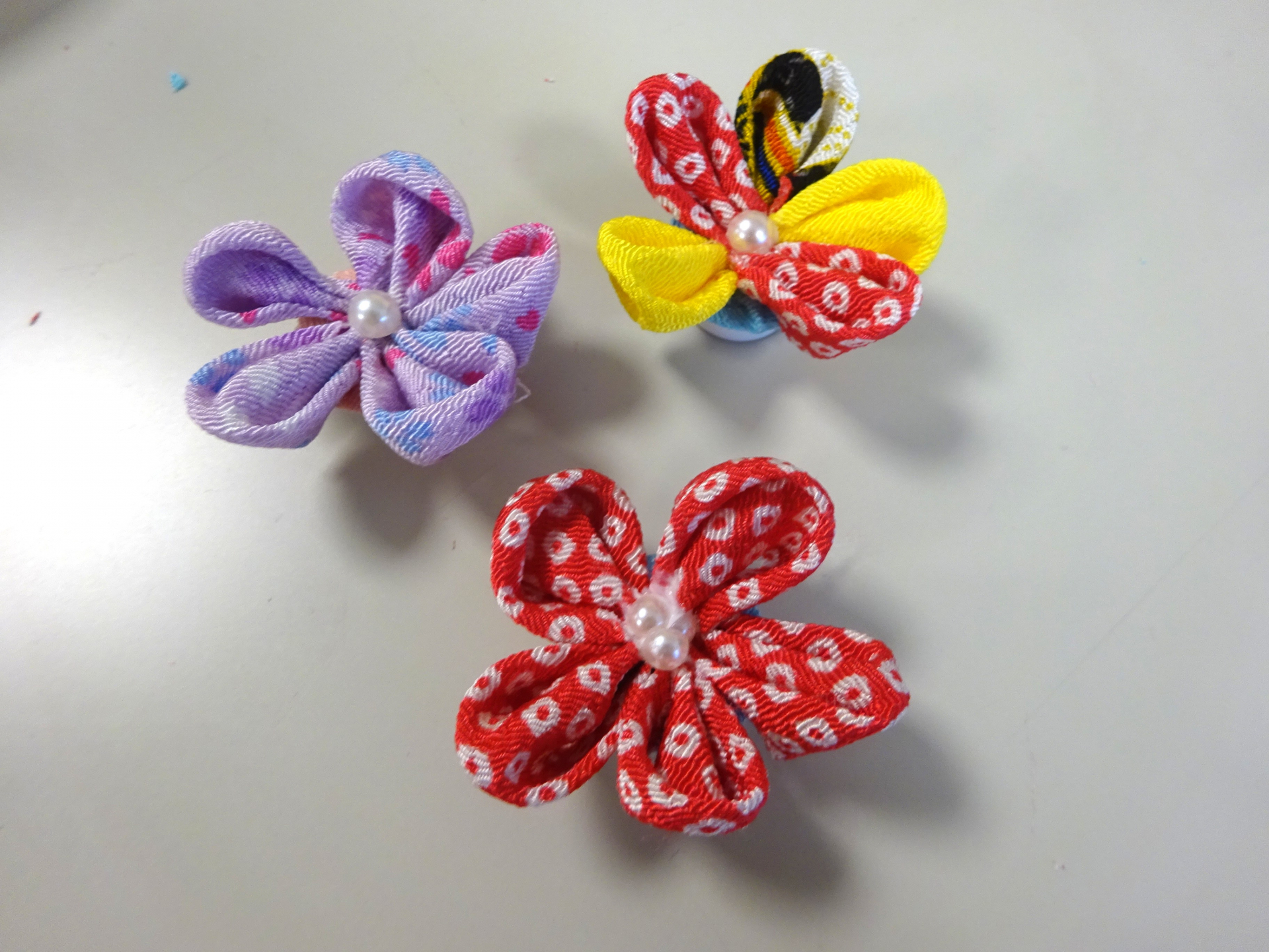 「ちょっと失敗しちゃった」と言っておられた方が、完成したつまみ細工を「かわいい」と、