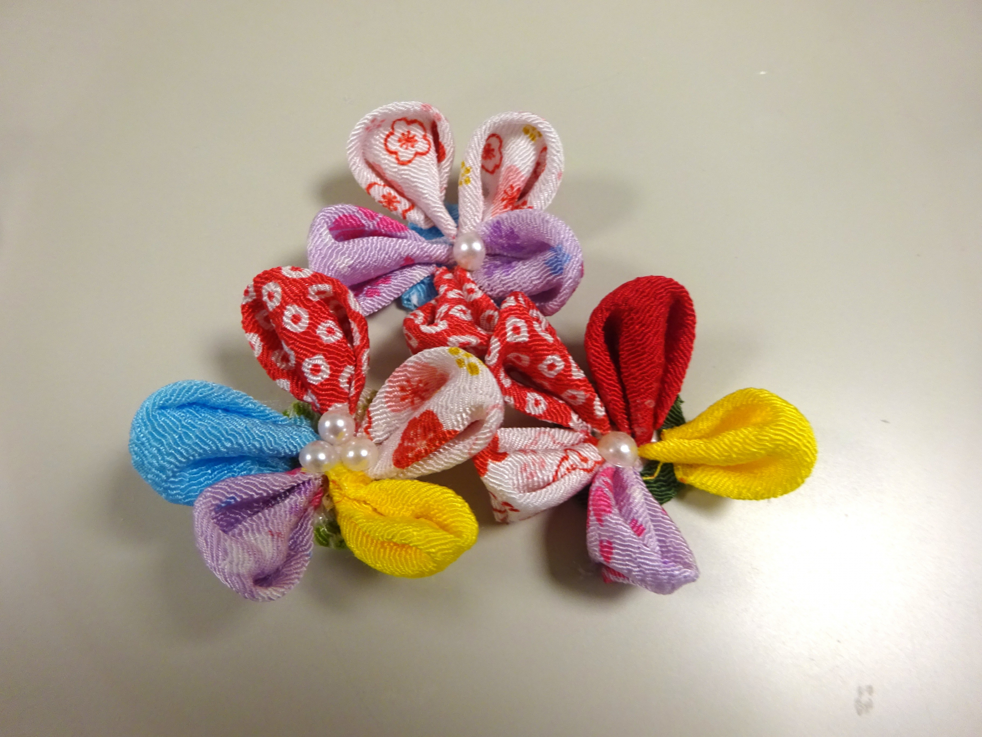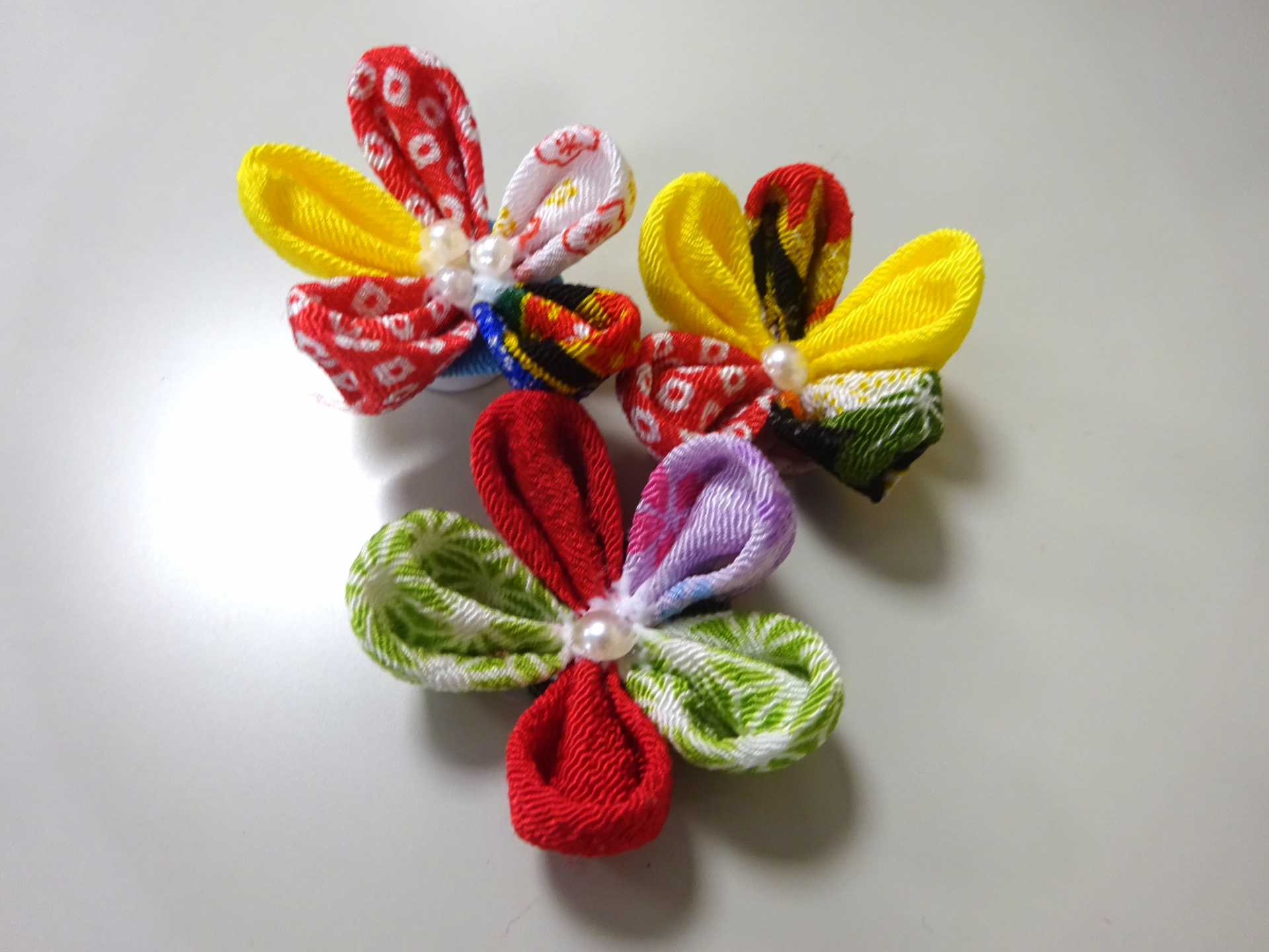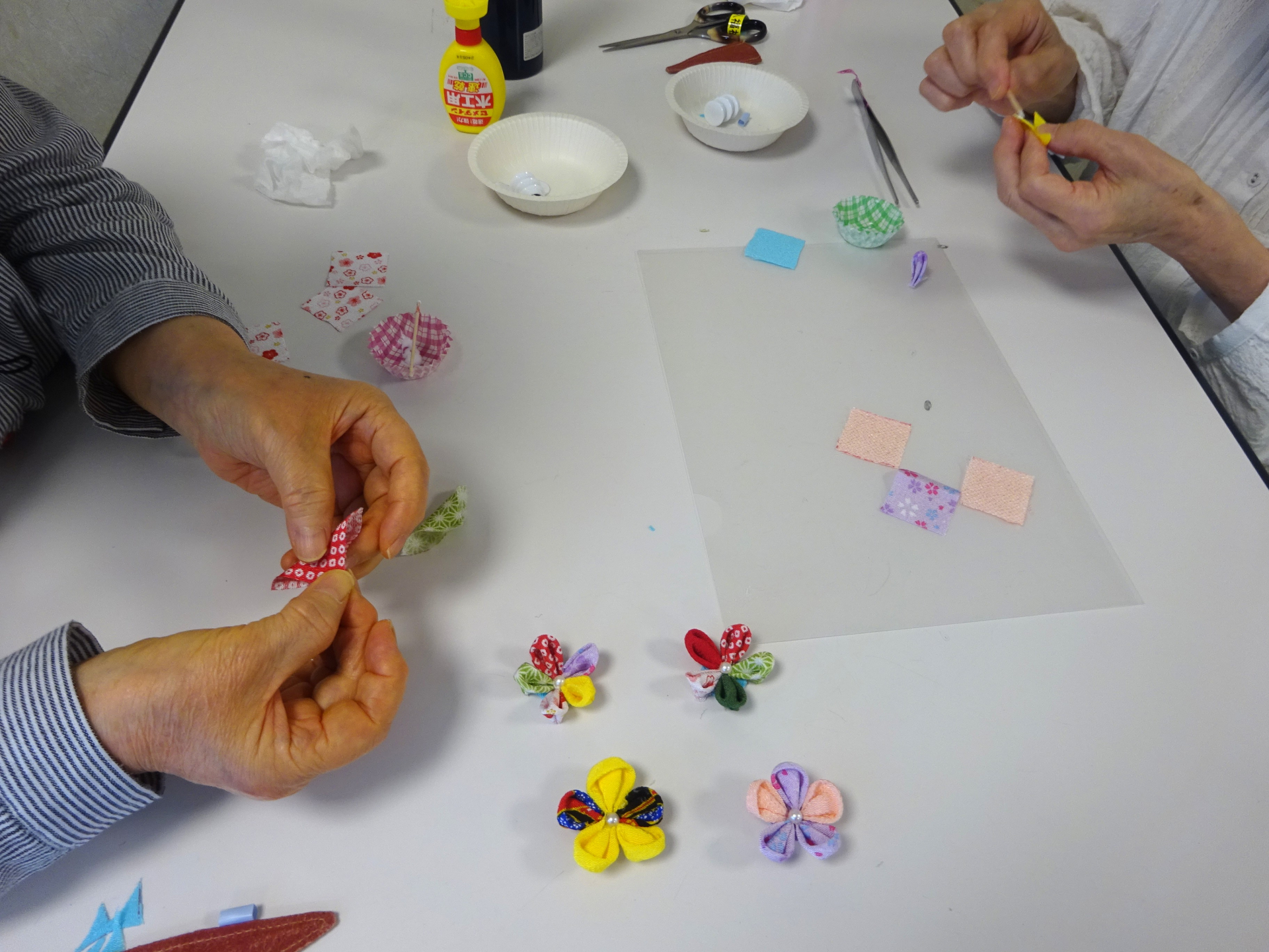 「ちょっと失敗しちゃった」と言っておられた方が、完成したつまみ細工を「かわいい」と、