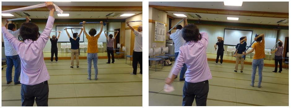 健康息き活き体操は、呼吸を意識してゆっくりと身体を動かす体操です。意識して深い呼吸を心掛けることでリラックス効果もあります。終了後は身体もすっきり爽やか! 是非10月からの後期講座で参加してみませんか?