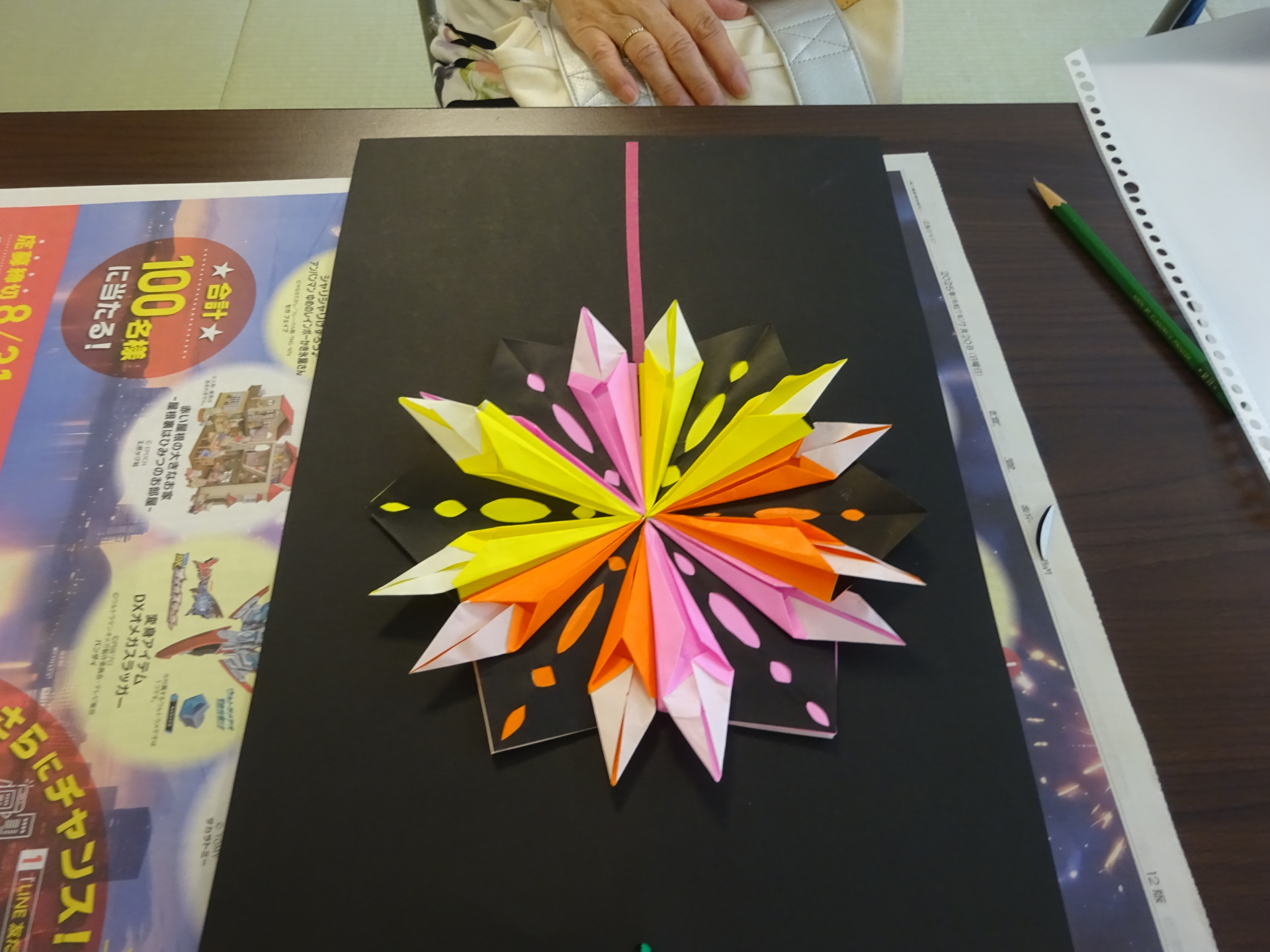 本日の折り紙教室は、夏にちなんで花火を作成しました。