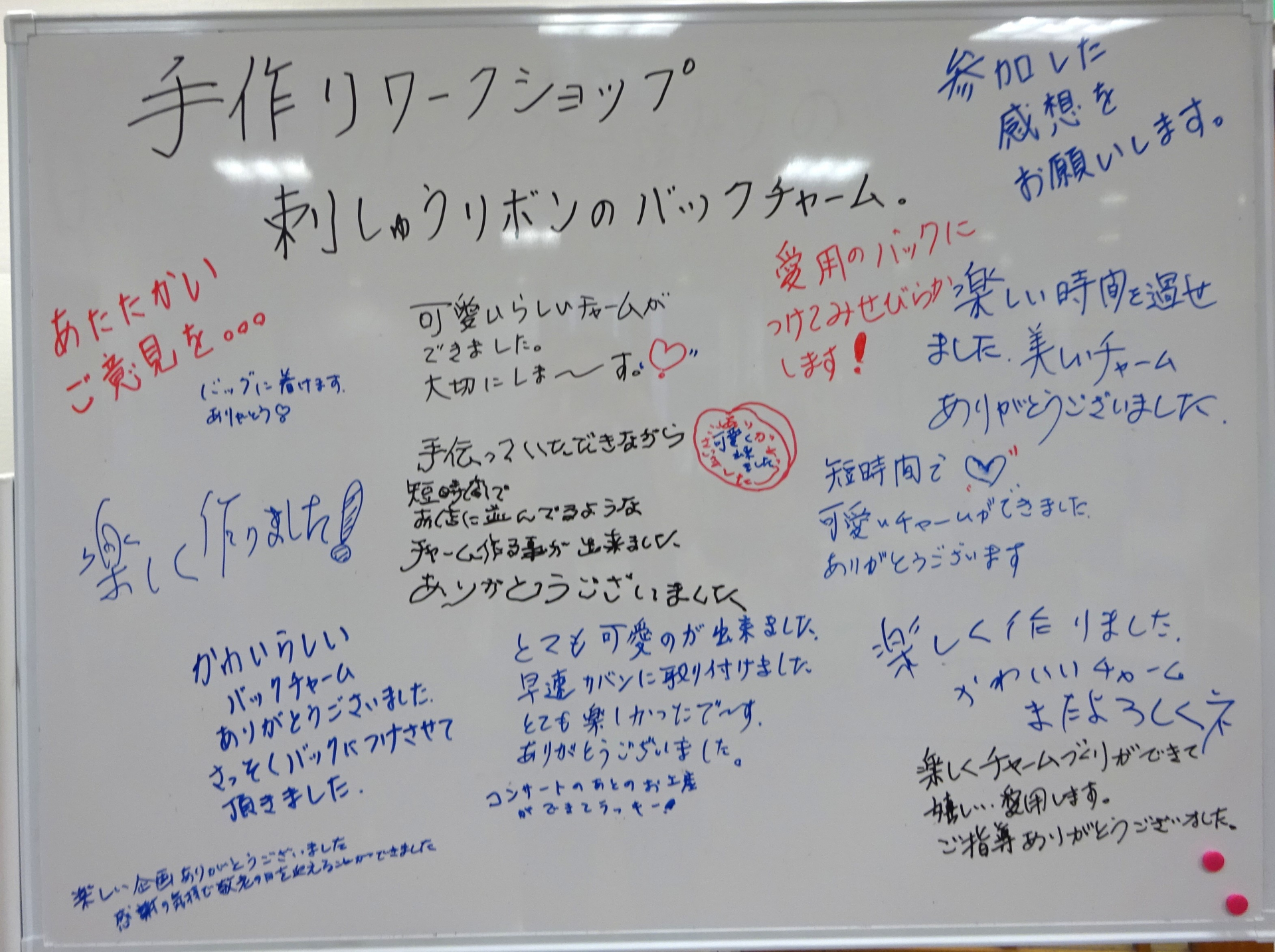 お帰りの際にホワイトボードに感想を書いていただきました。