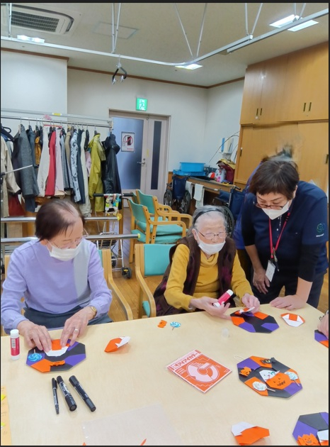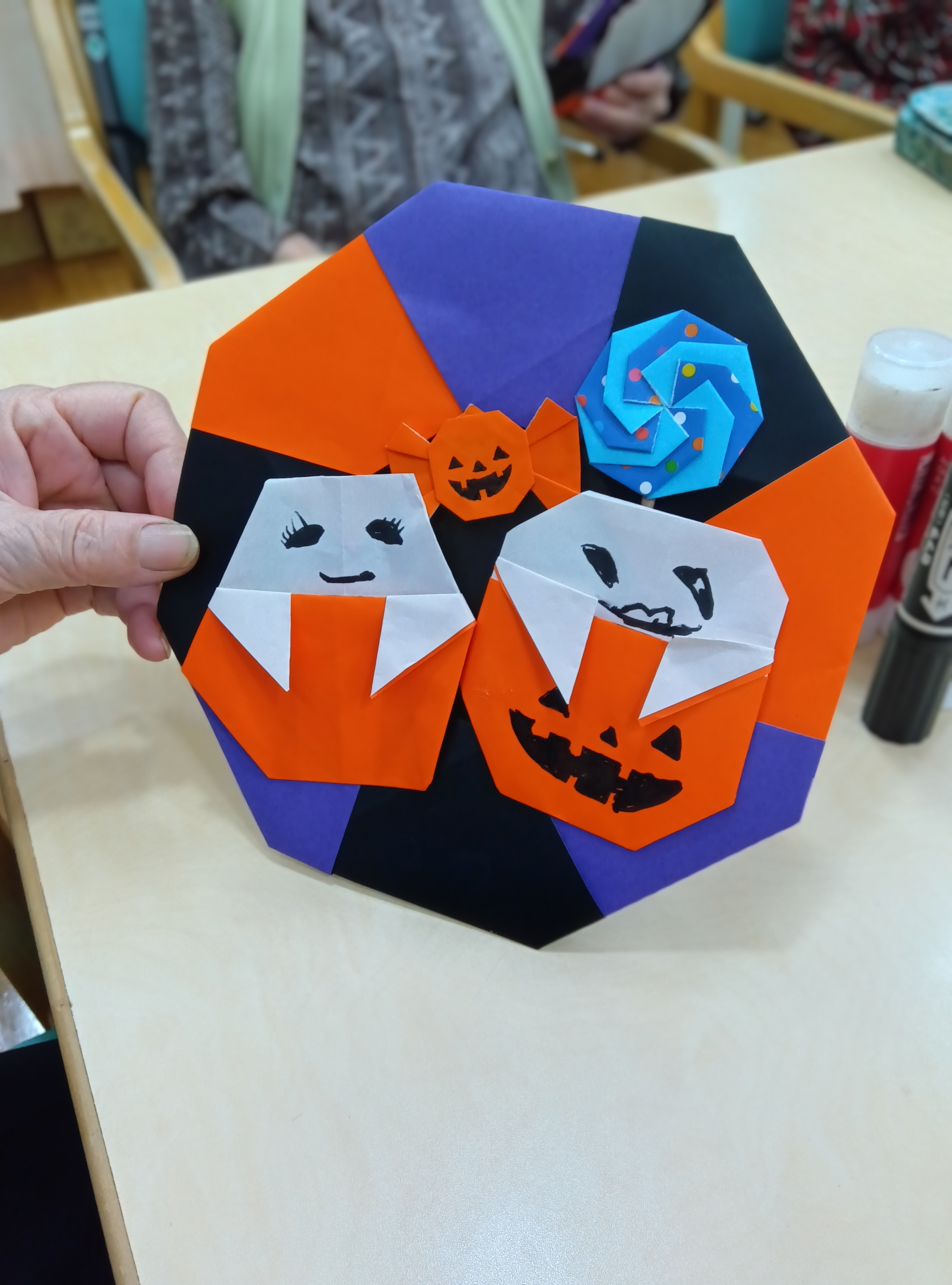 ご利用者の皆様にはおばけの折り紙を折っていただき、キャンディーなども一緒に飾りつけをしました。