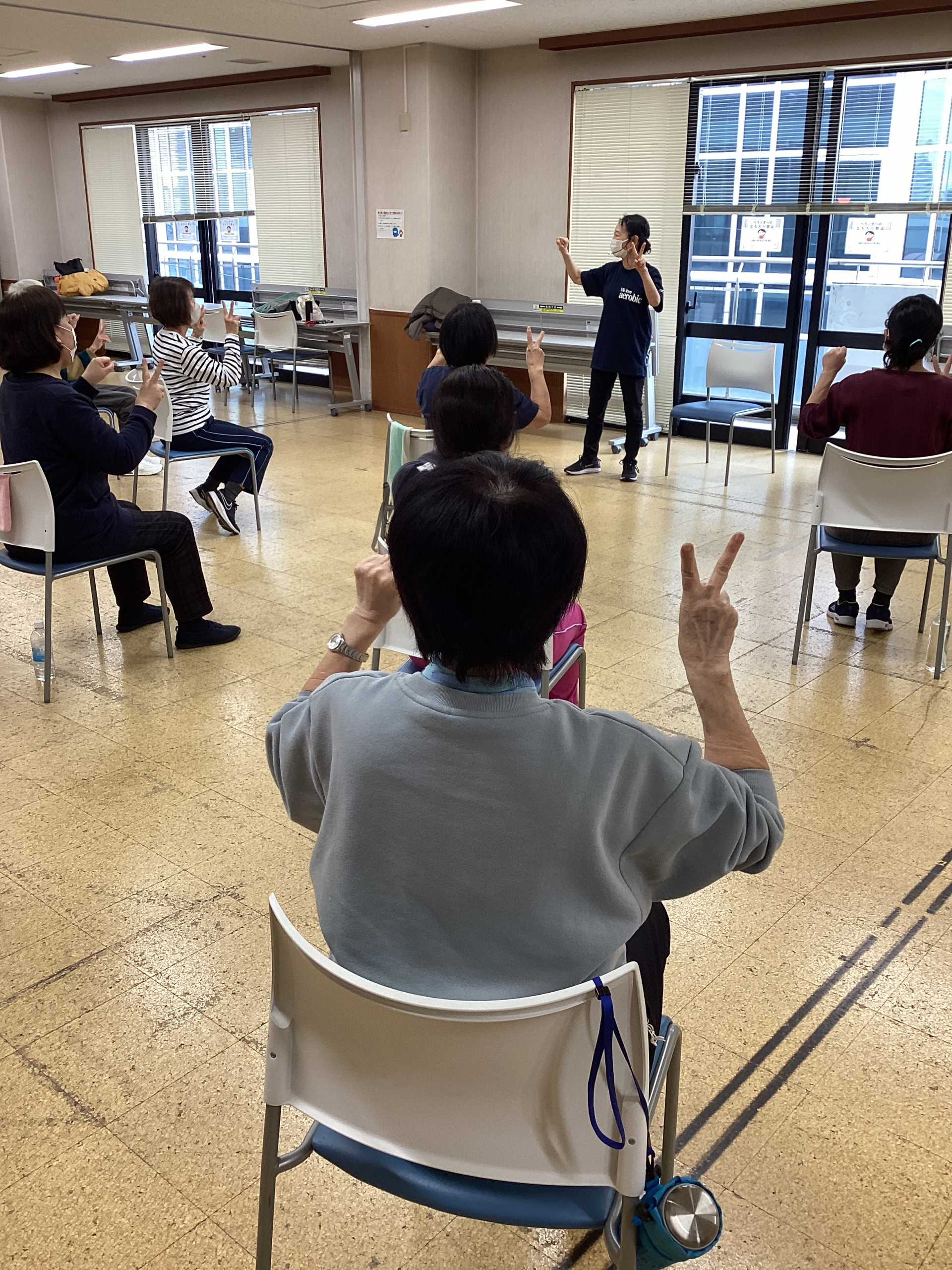 星先生の明るく元気な掛け声とともに、まずは準備体操からスタート!そして脳トレ!