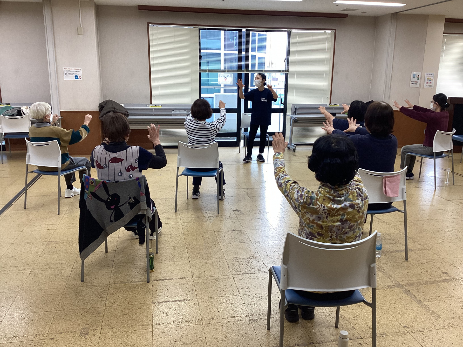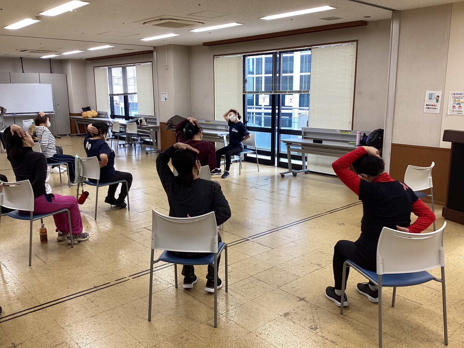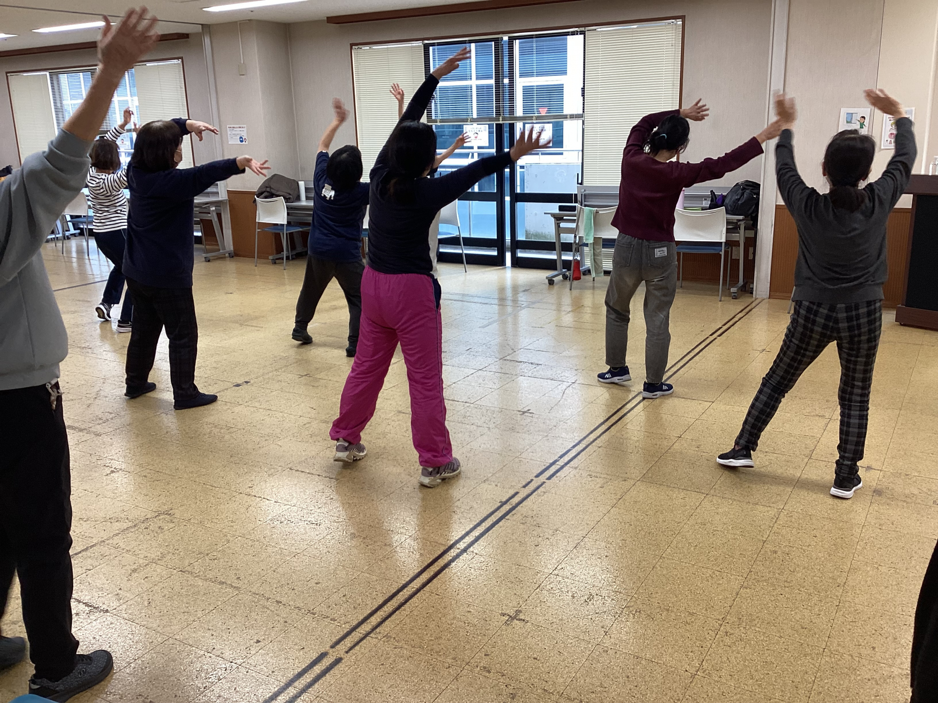 BGMに合わせ少しづつ体を動かし体に適度な負荷をかけていきます!