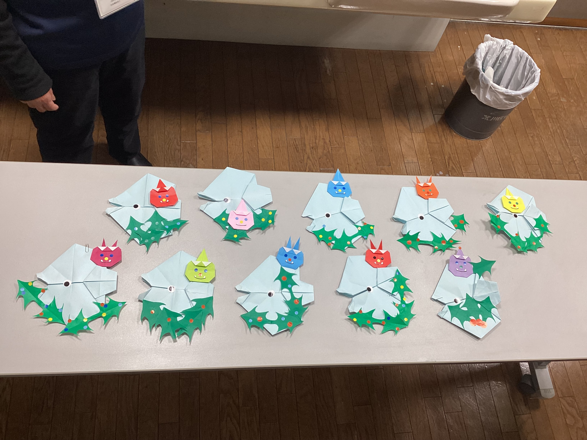 鰯の頭はコピー用紙を30㎝四方にして大きめ折り紙に 鰯のエラの部分がややこしいので時間がかかるかな?と思い、