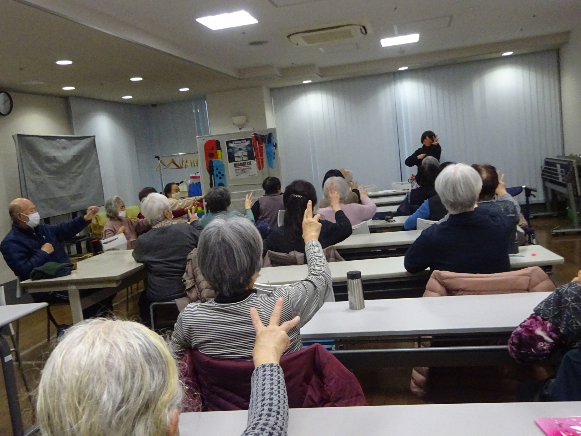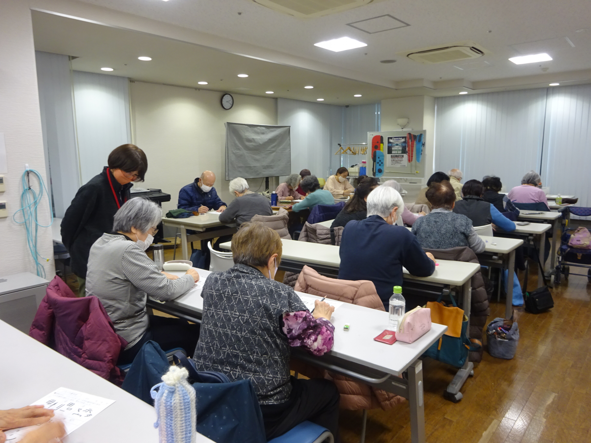 漢字問題、計算問題、間違い探し、クイズ問題等プリントで回答し、その後皆様で一緒に