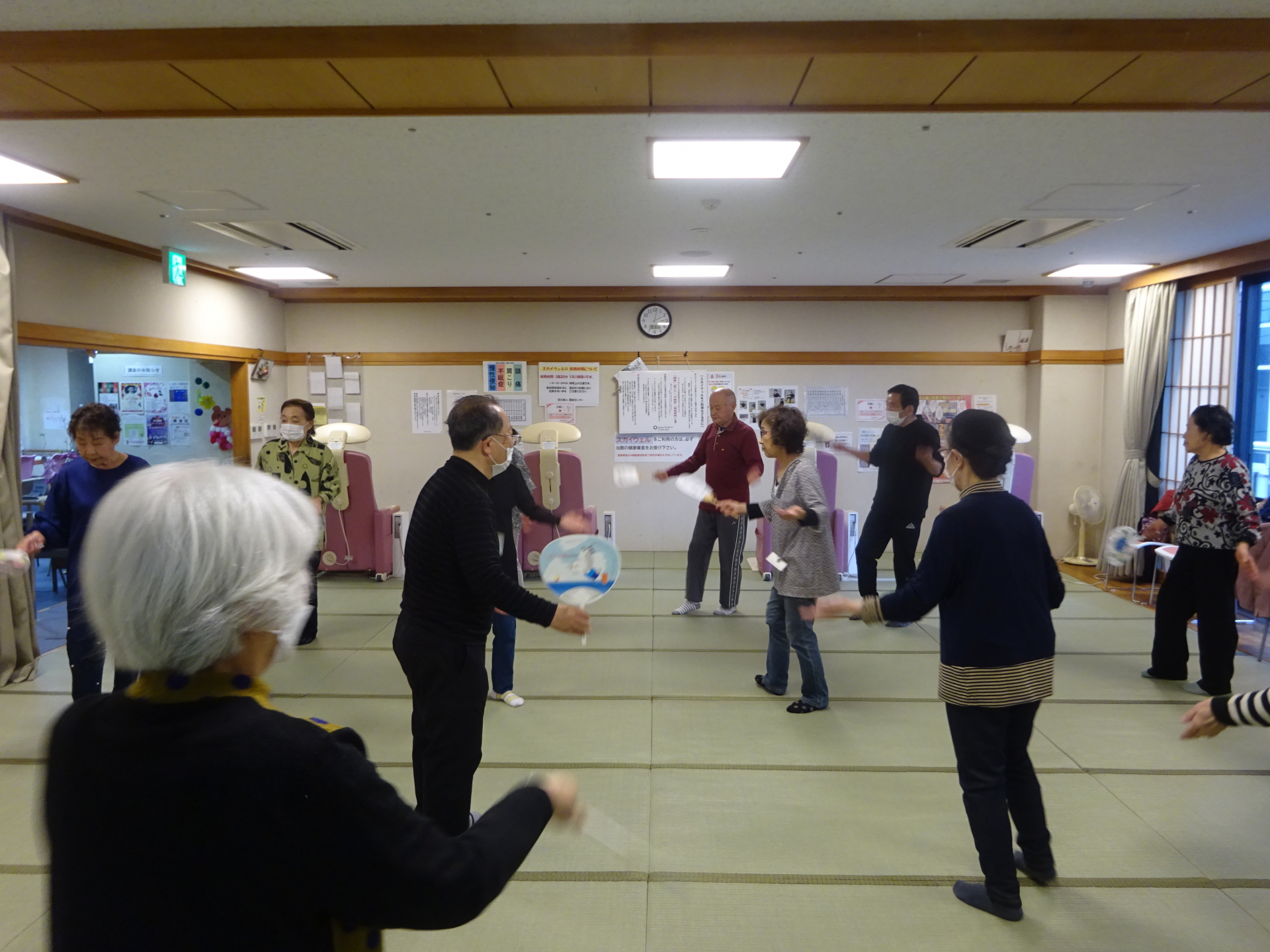 この時間(盆踊り)冬でも、いこい室の暖房は直ぐにOFF。換気用に窓が少し開けられるのが常です。