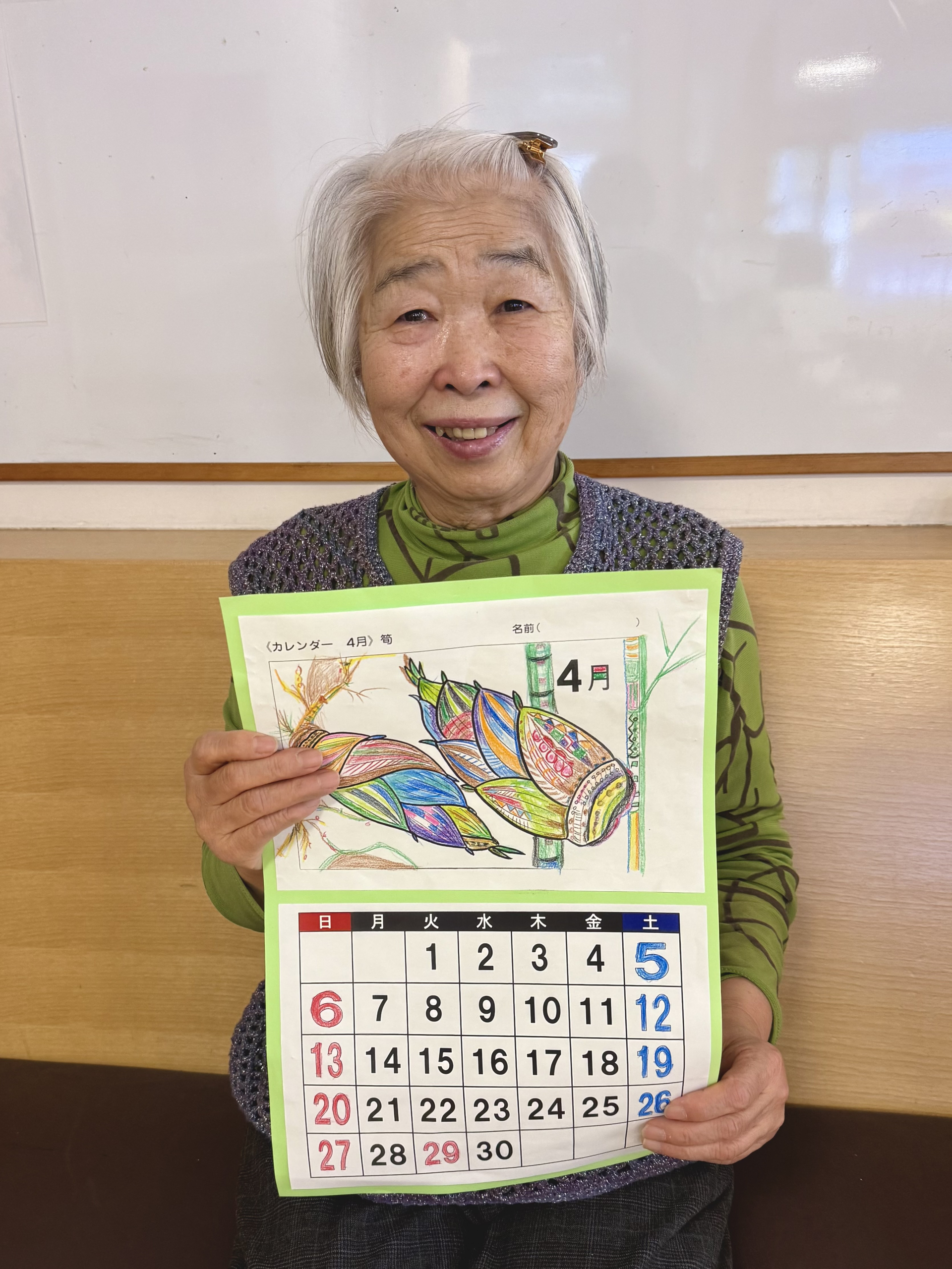 【淡路デイ】I様、4月のカレンダー塗り絵を完成されました!