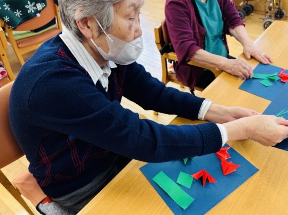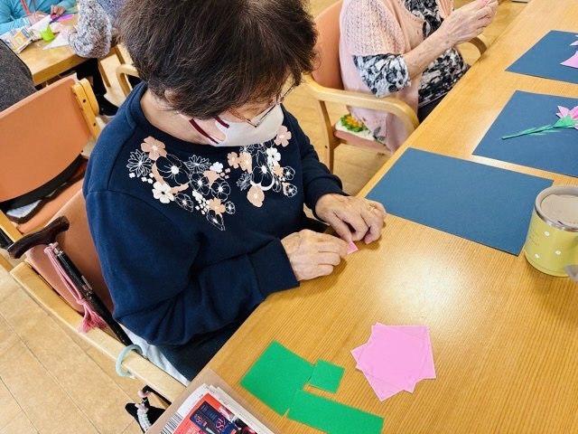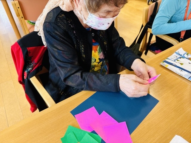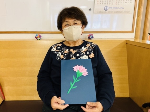 今日の午後プログラムでは、折り紙で「カーネーション」を作っていただきましたよ♪
