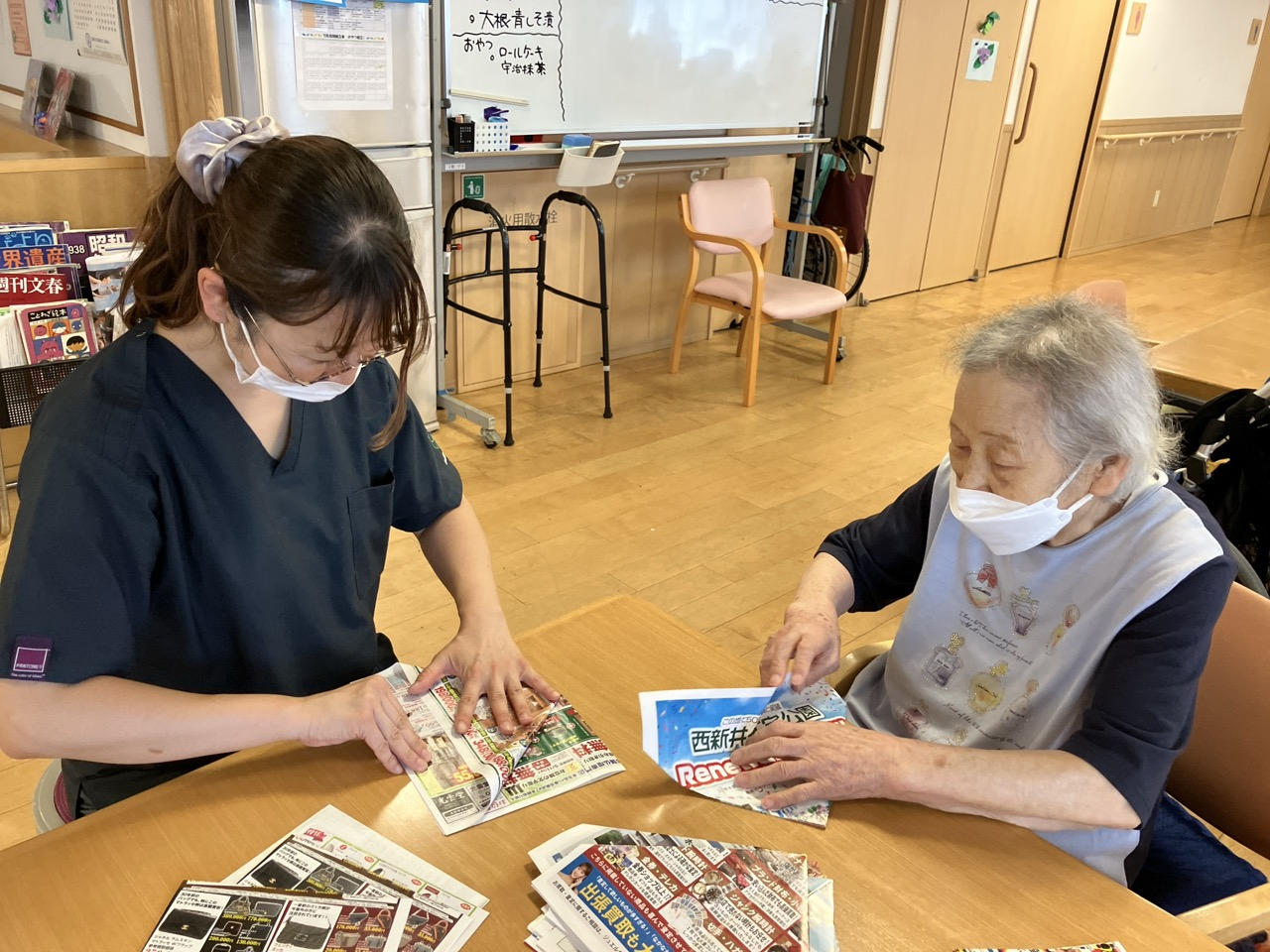 淡路デイでは、待ち時間にお手伝いをお願いしています。