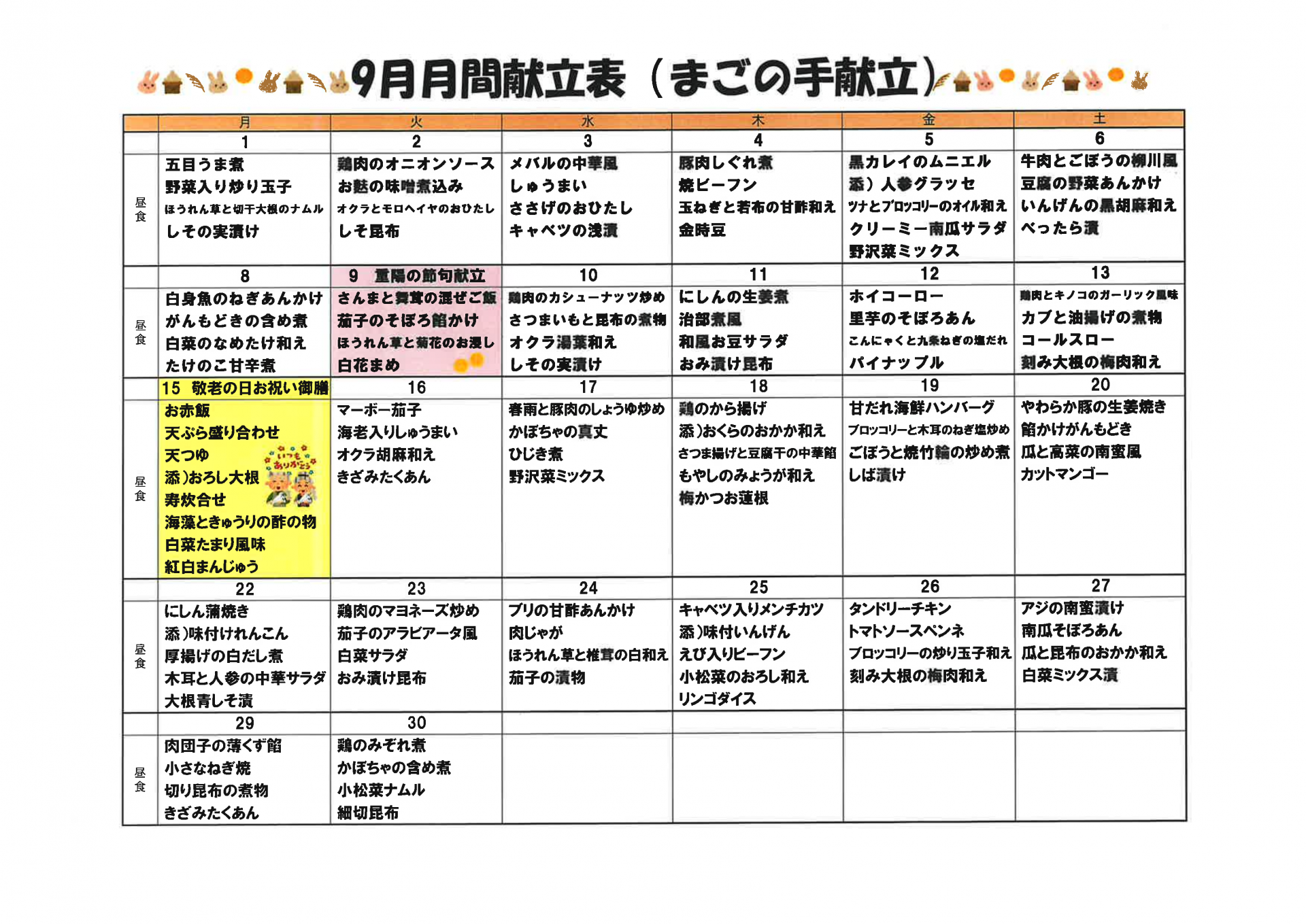 今月も美味しい昼食をご用意してお待ちしております(^_-)-☆