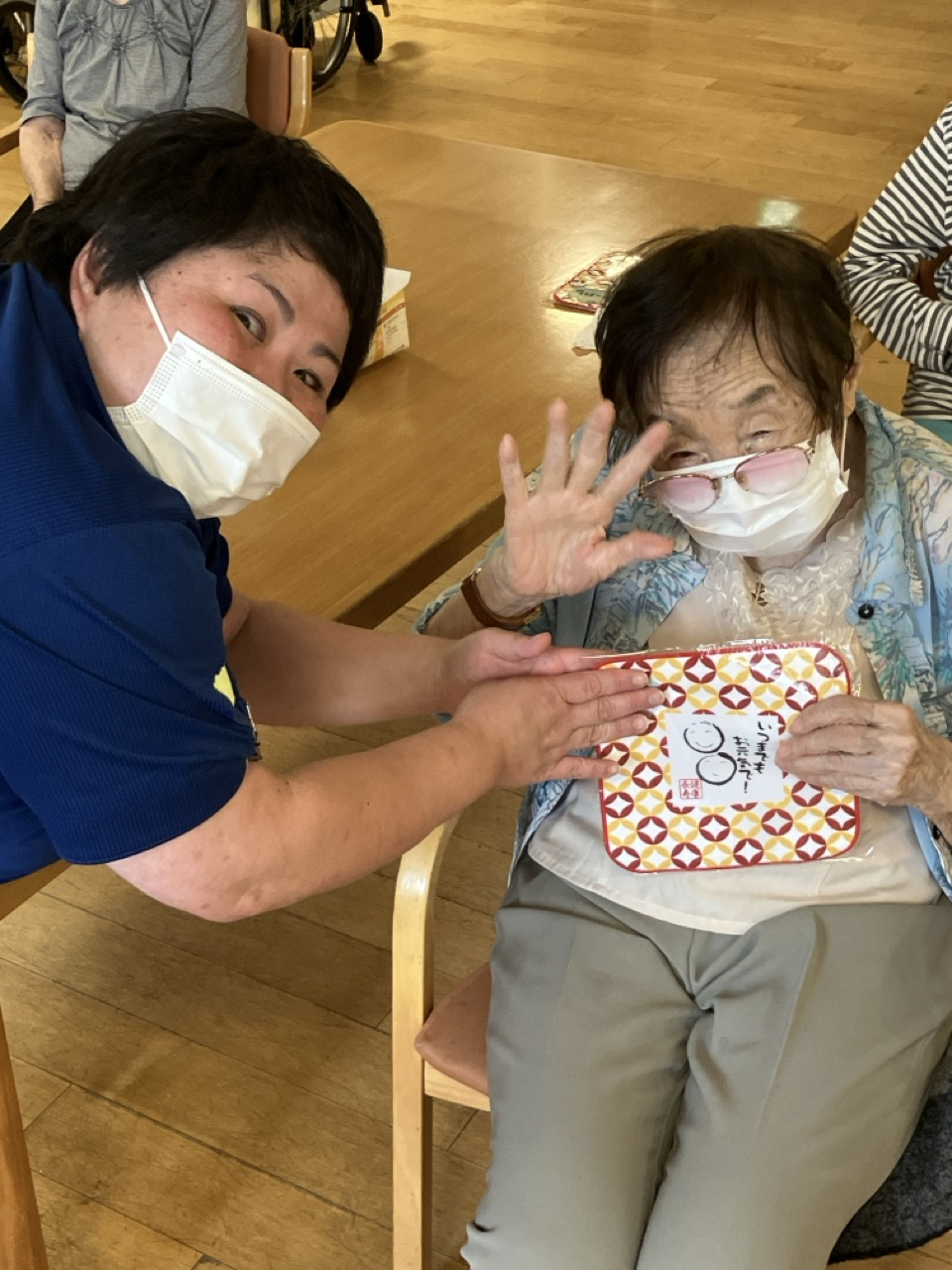 これからもお元気で淡路デイにご来所下さいね。」職員一同。