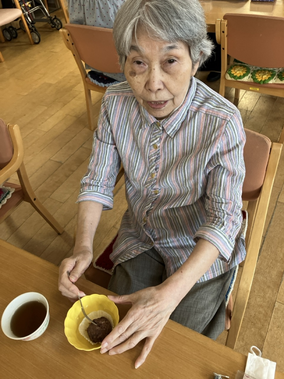 そして、今日のおやつは「おはぎ(つぶあん)」でした。