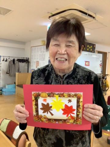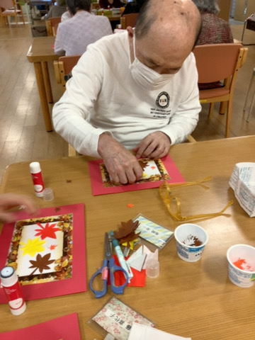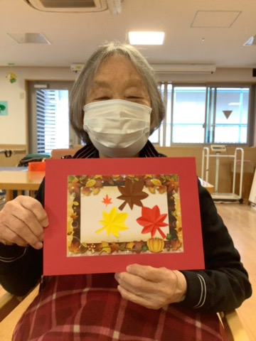 今月の手工芸は【秋】をテーマにした壁飾りを作成しました~