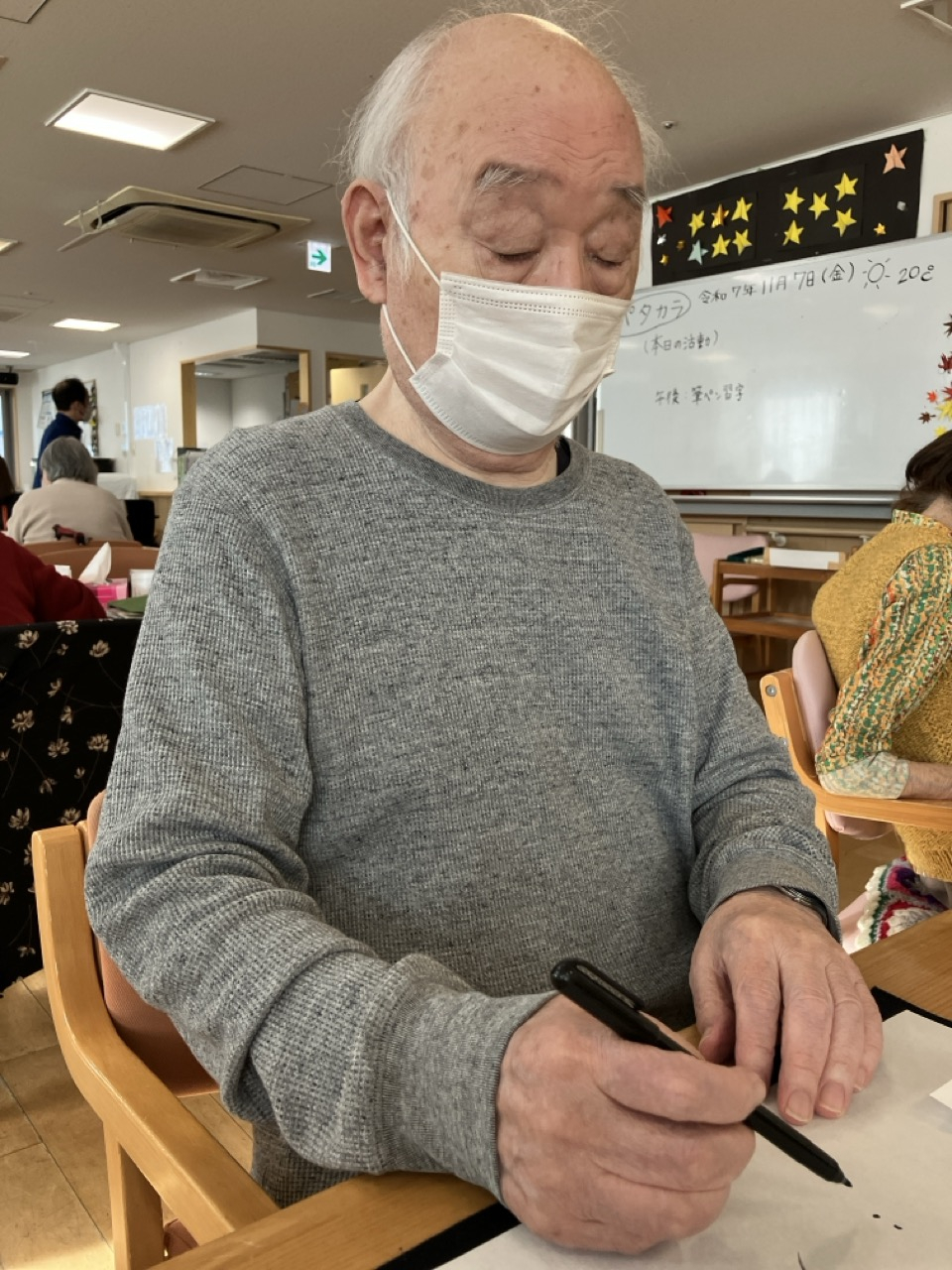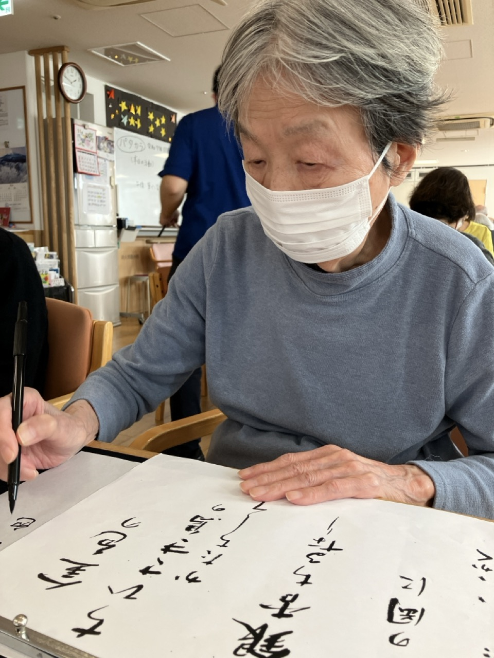 今日の午後レクは、筆ペン習字でした(^^)