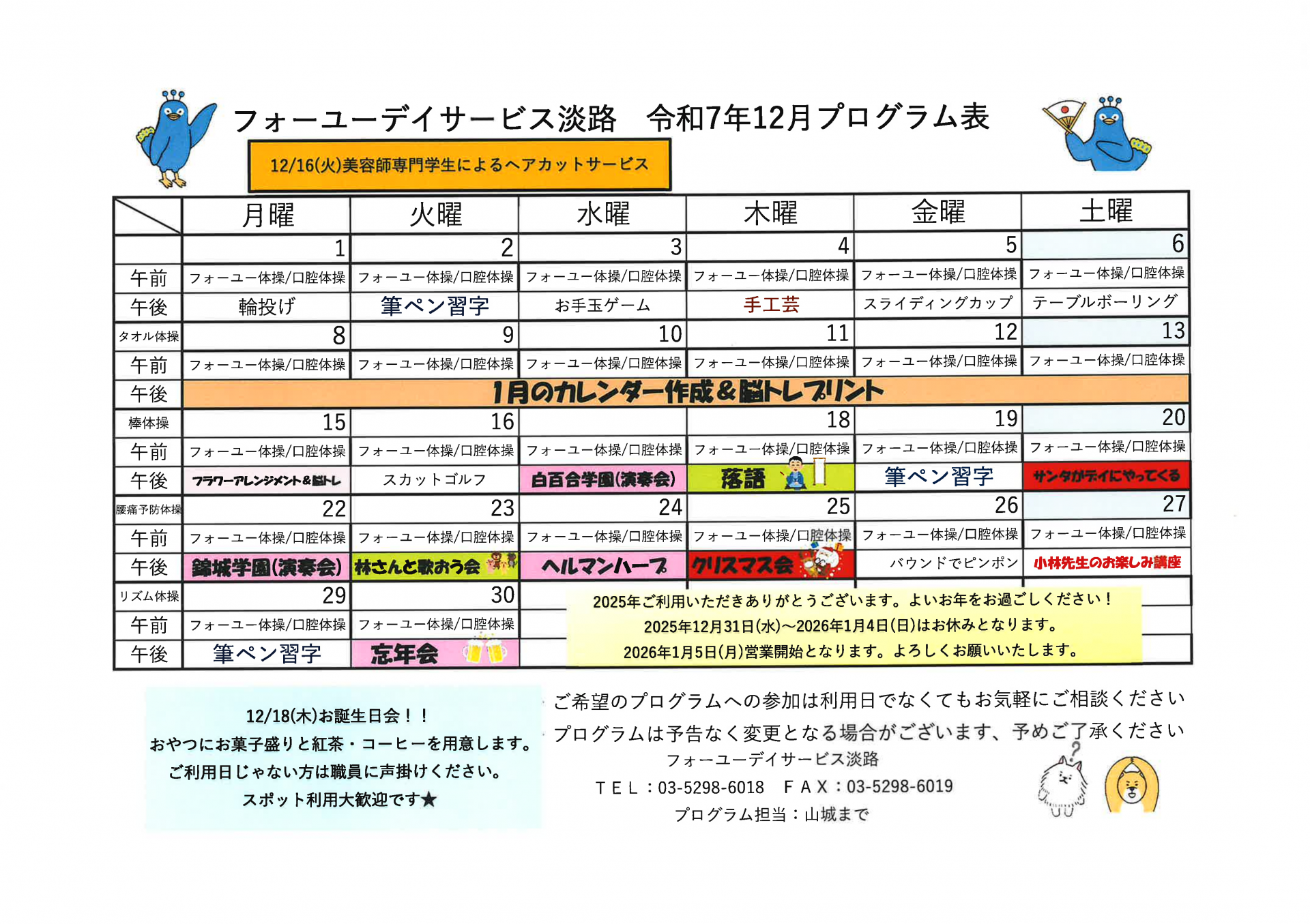 【淡路デイ】12月のプログラム表