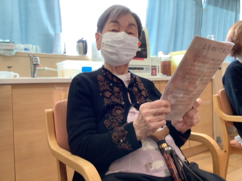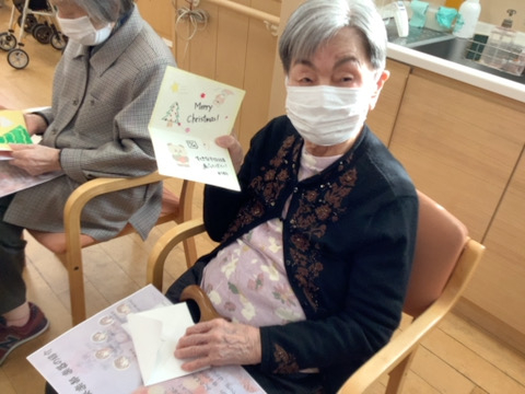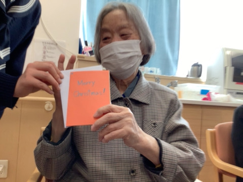 演奏の後、学生の方々に手作りのクリスマスカード,という心温まるプレゼントを頂き嬉しい笑顔のF様