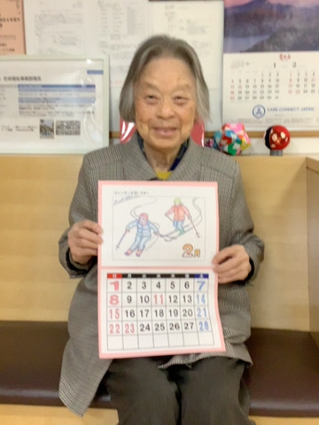 2月のカレンダーが完成し作品を手にされたF様、この通りにっこり笑顔!