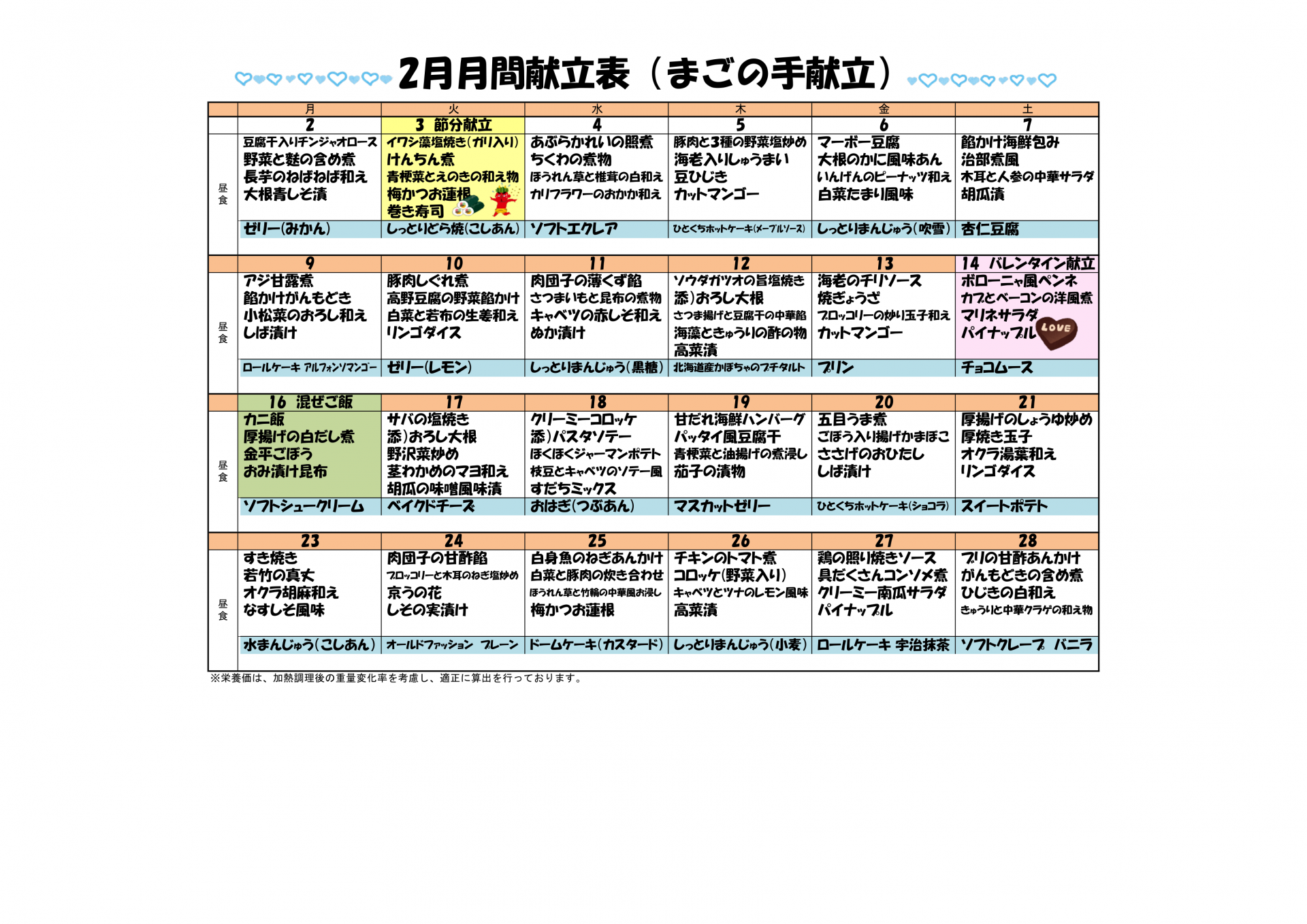 【淡路デイ】2月献立表