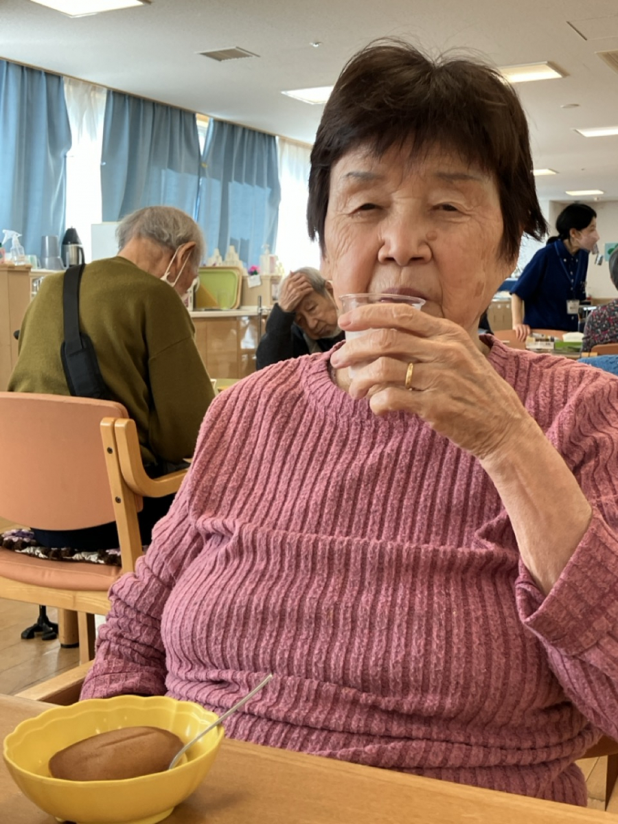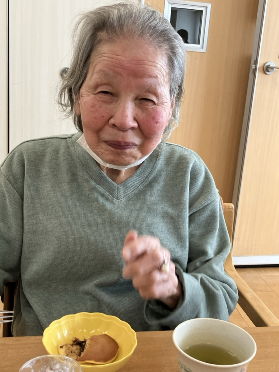 今日のおやつはどら焼きのお供に、ご利用者様に作っていただいた特別メニュー!いちごのフルーチェ♡