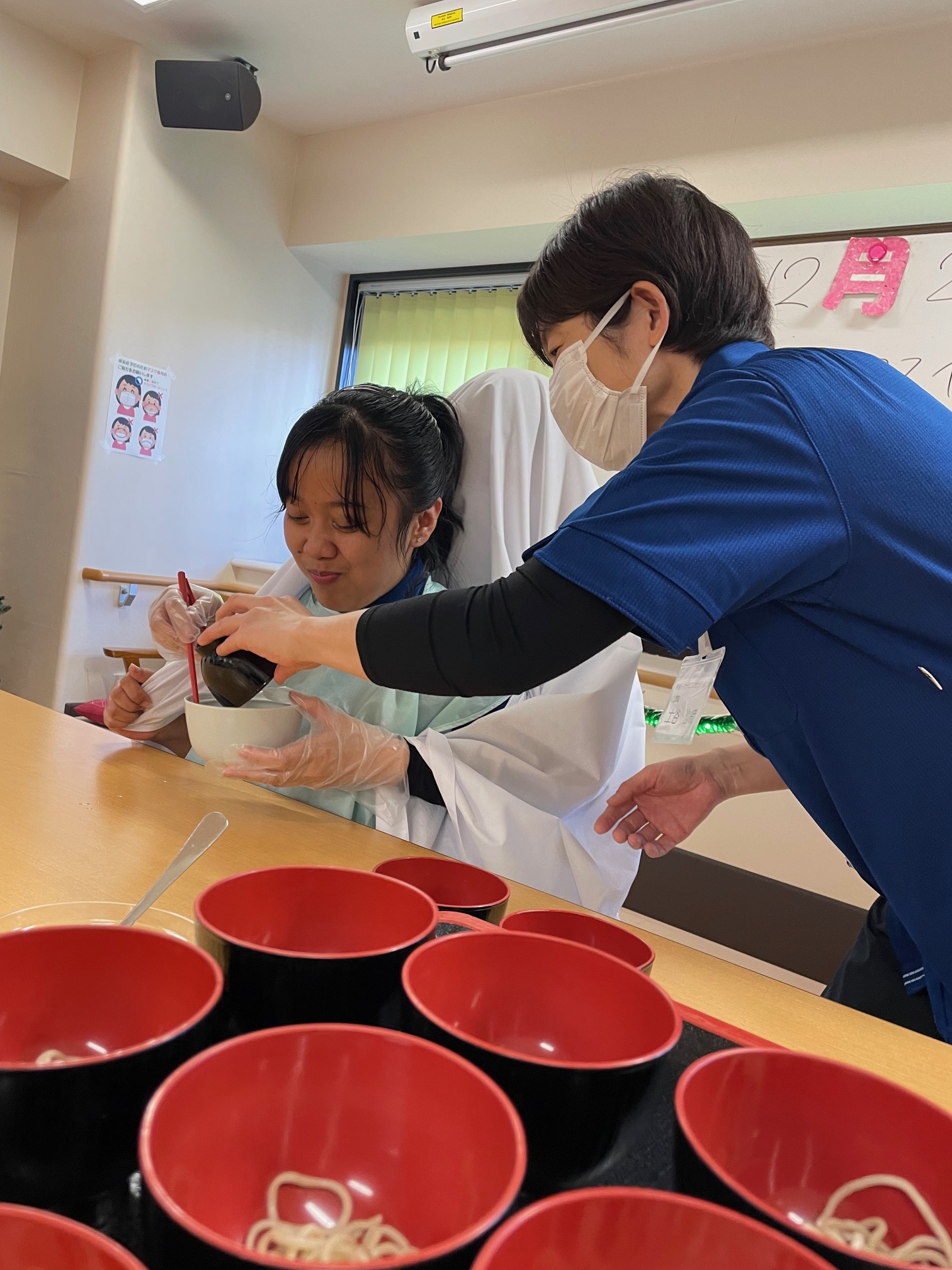 技能実習生のウランさんも初めてのわんこそば、二人羽織☆日本の文化に触れて楽しそう♪