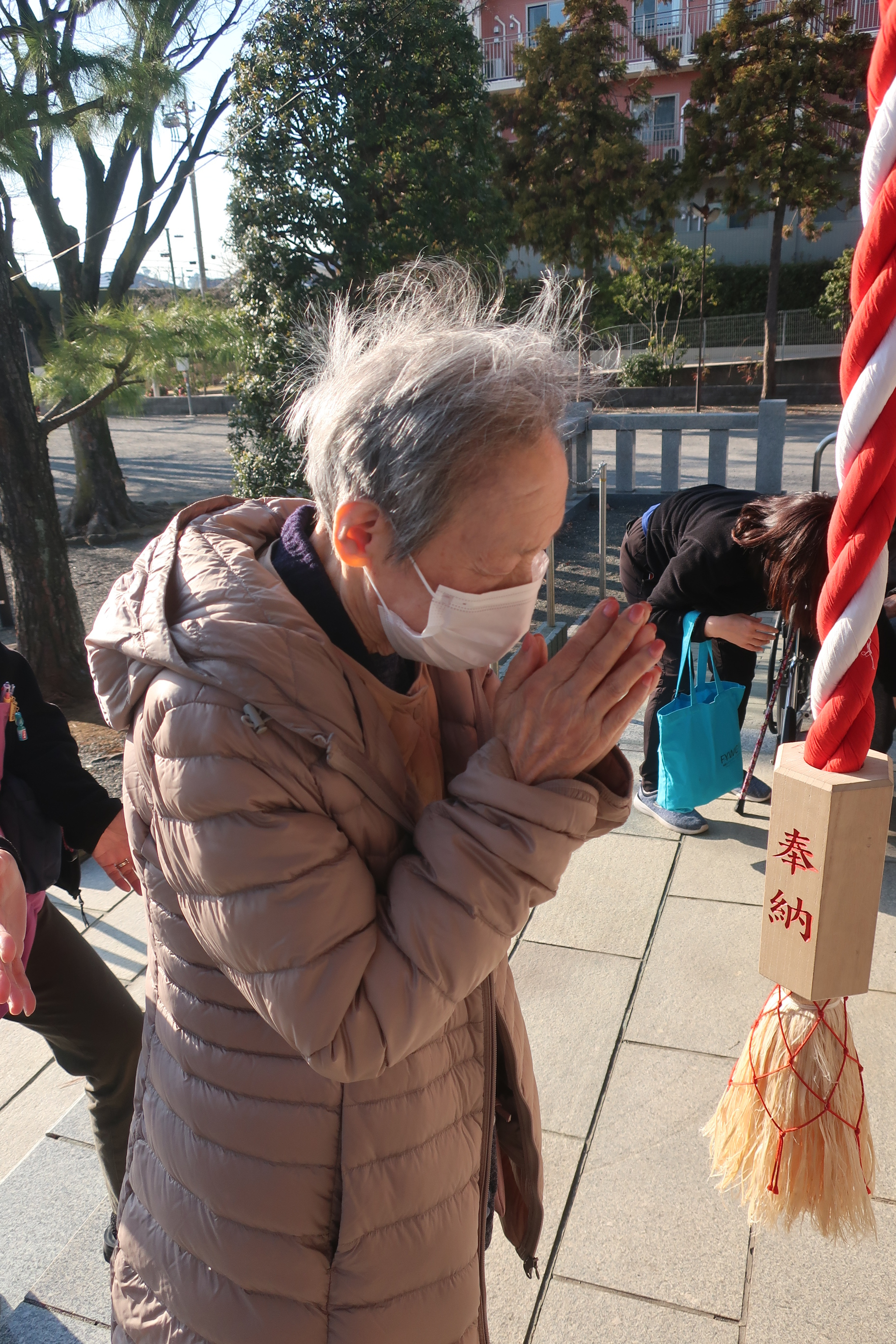 初詣後は、皆様で記念写真。久しぶりの参拝で楽しい一日をお過ごしの様子でした。