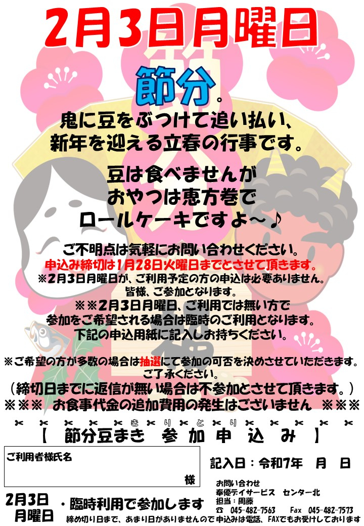 是非とも鬼(職員)に豆をぶつけに来てくださいね!