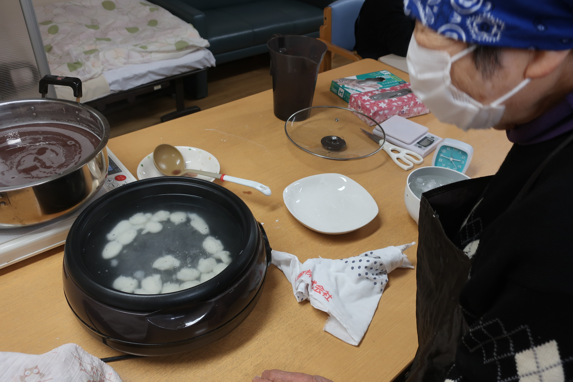 有志6名にて作る本日のsweetは! 二十日正月らしく白玉ぜんざいでっす!