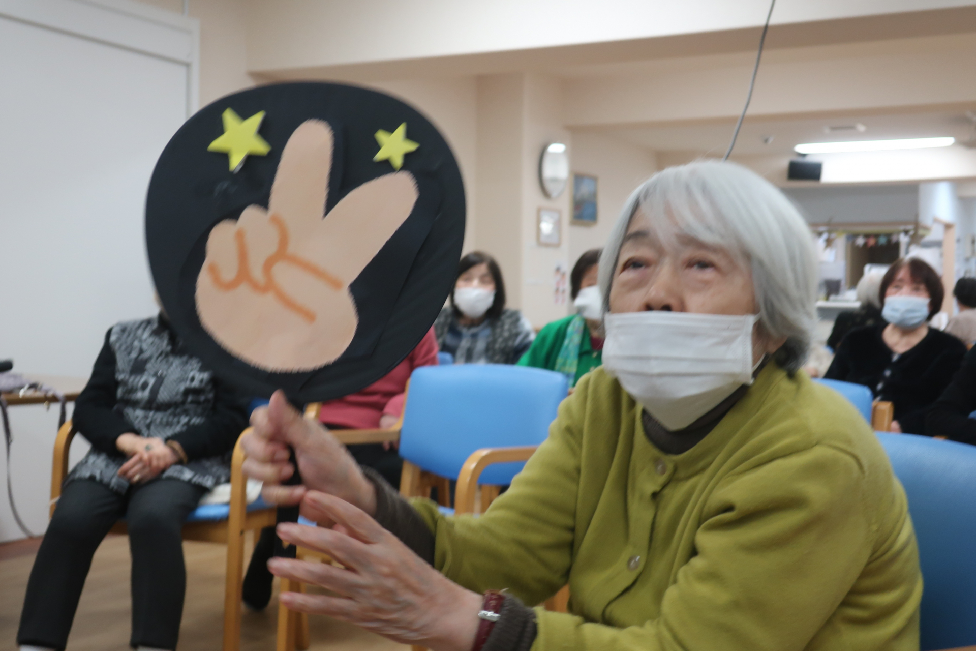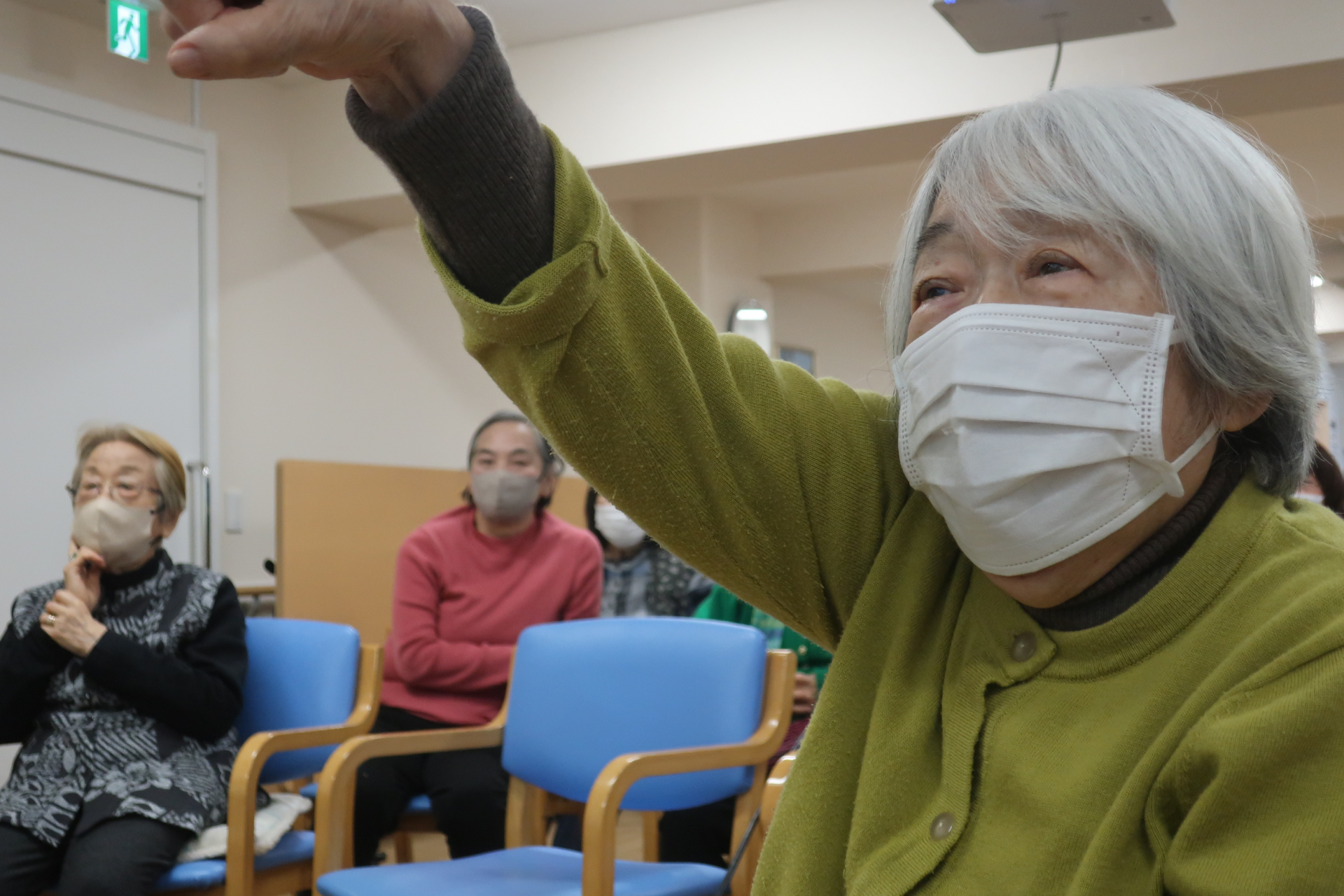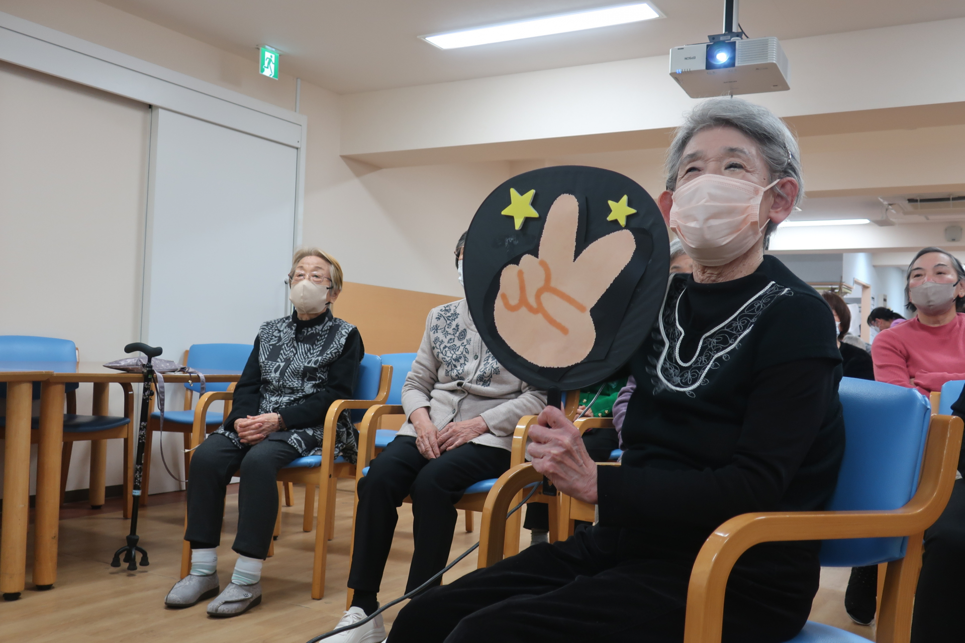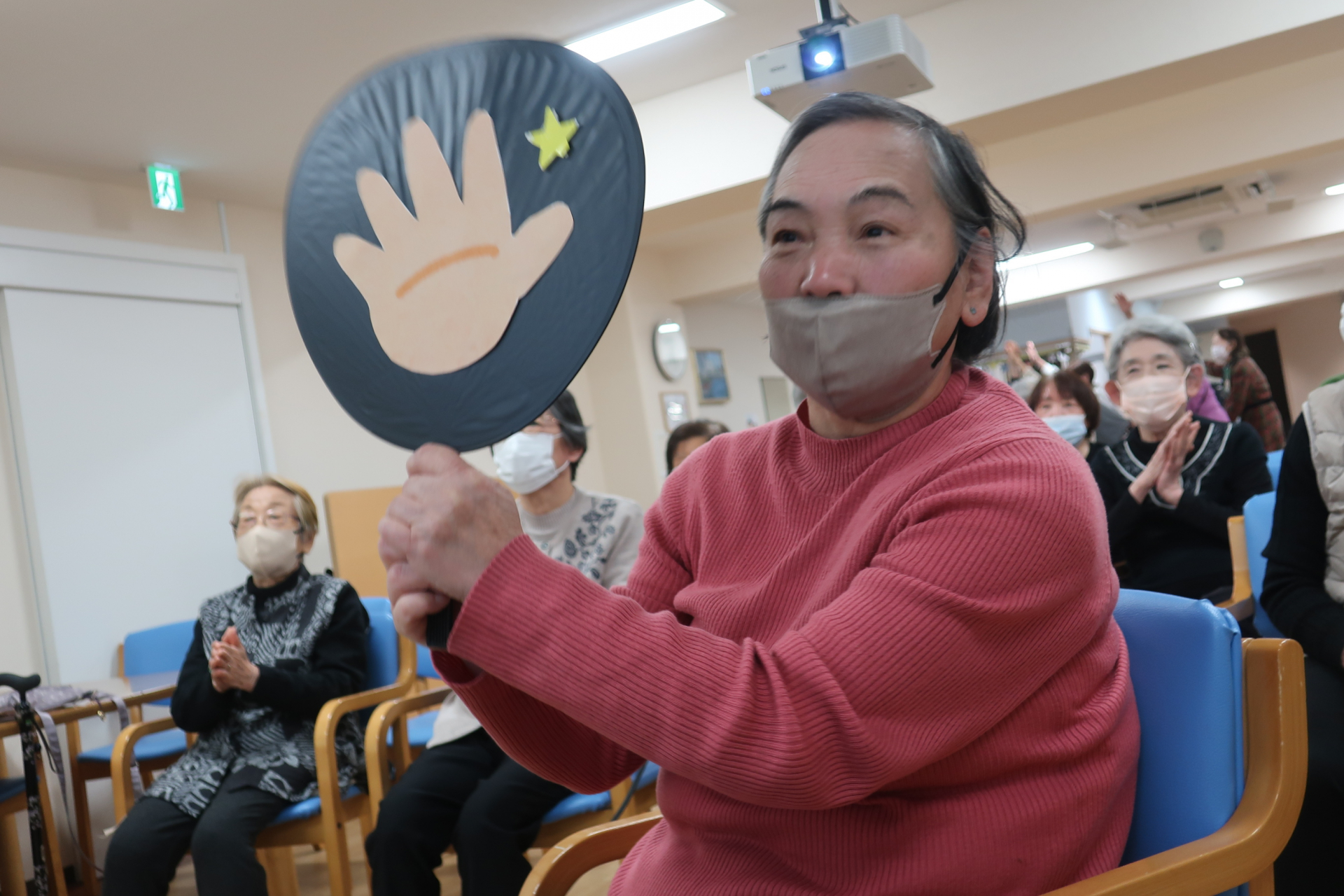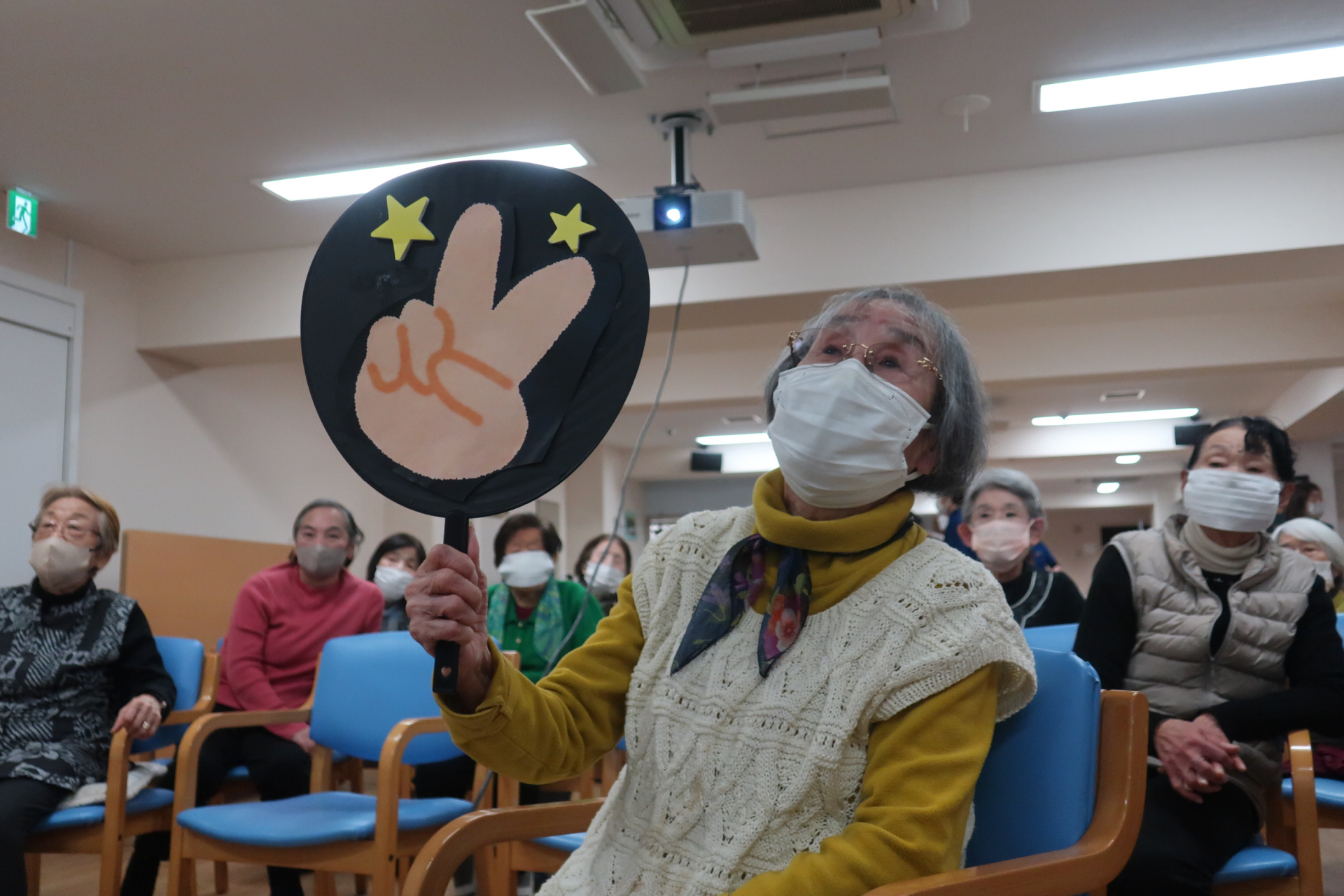 オンラインで繋いで実施する事で、日頃は1事業所内で実施して楽しんで頂いているレクリエーションを、3事業所合同で実施し、楽しさを共有して頂く試みとなっています。