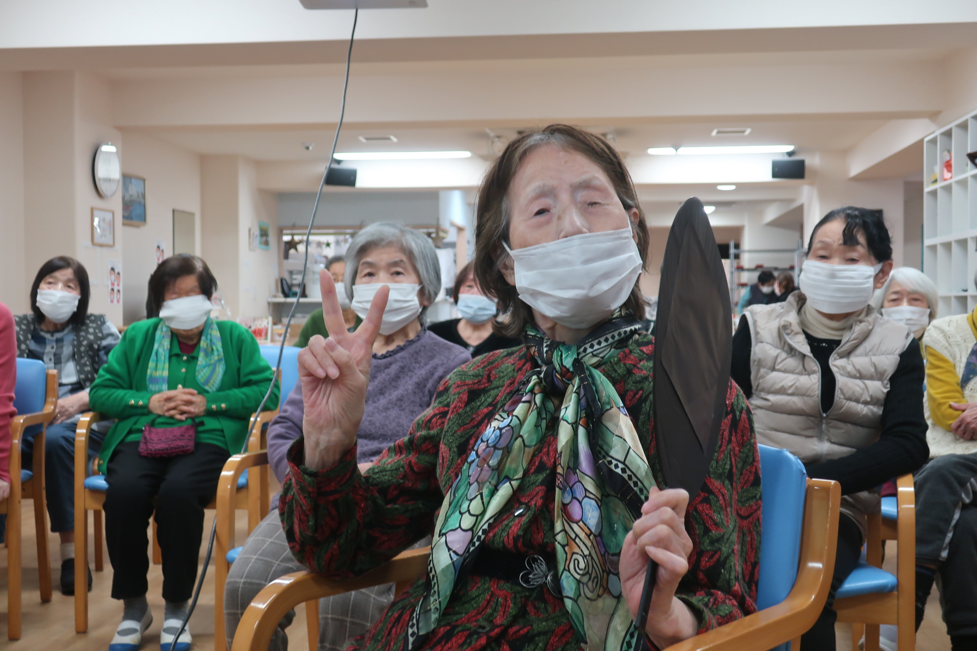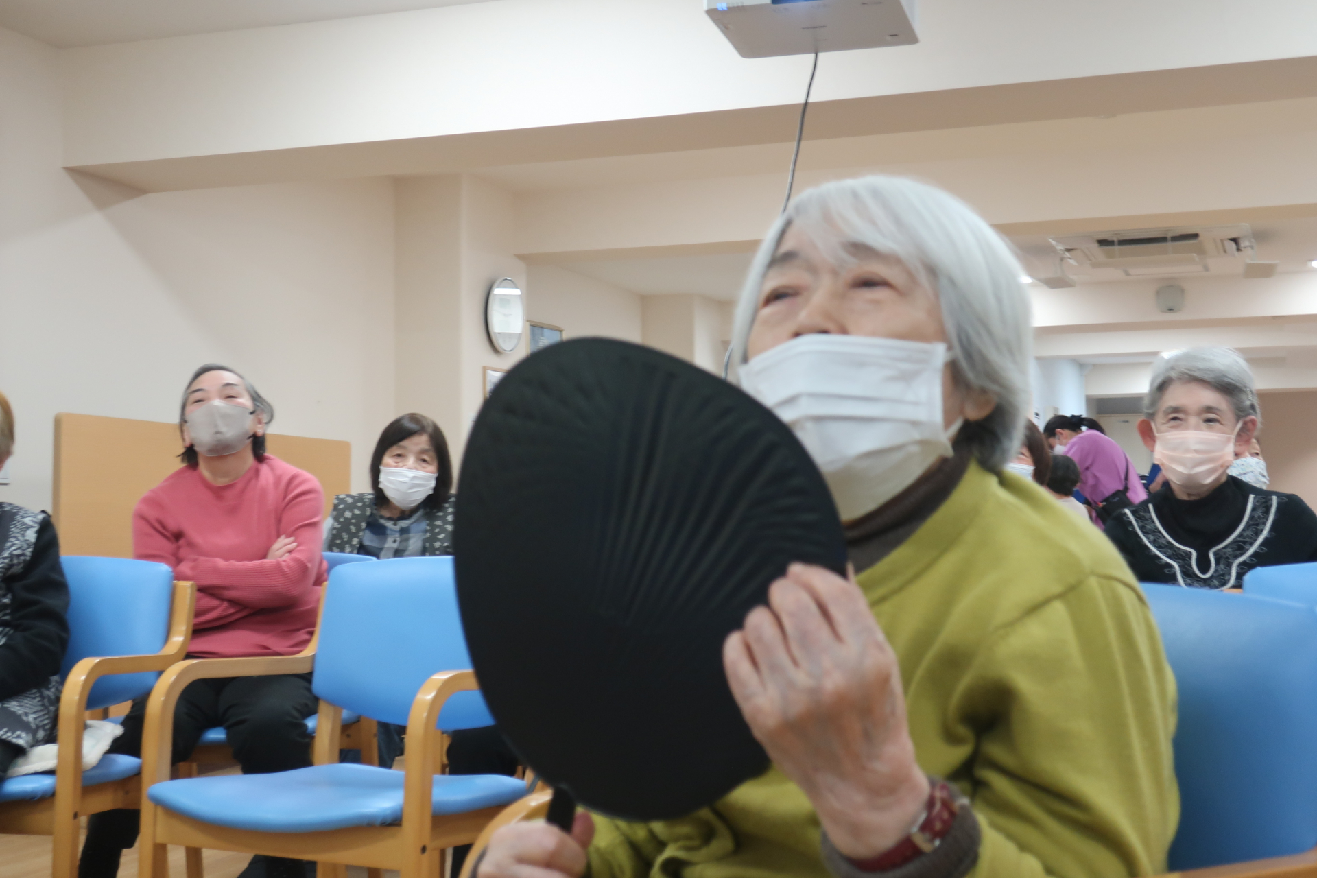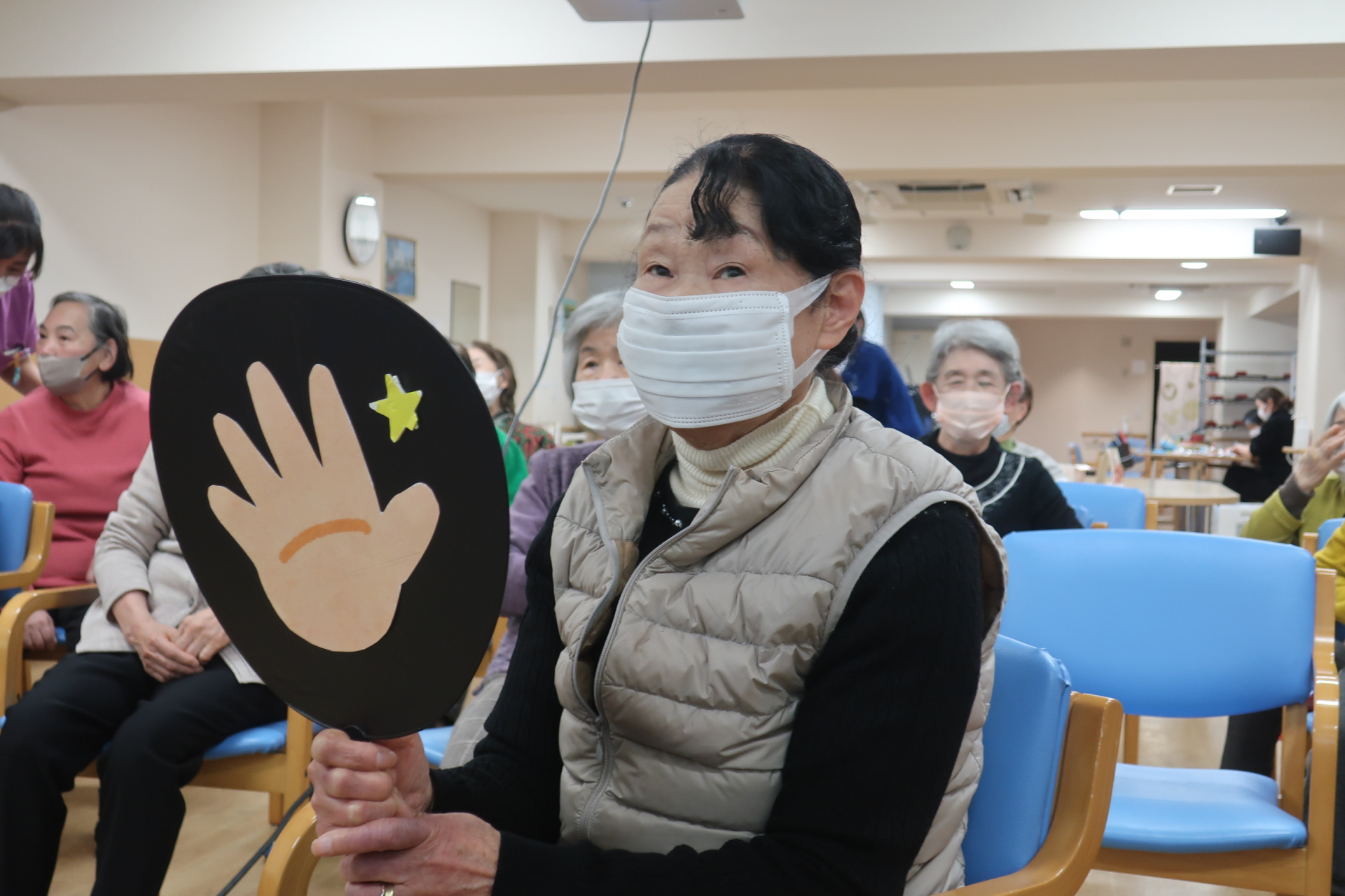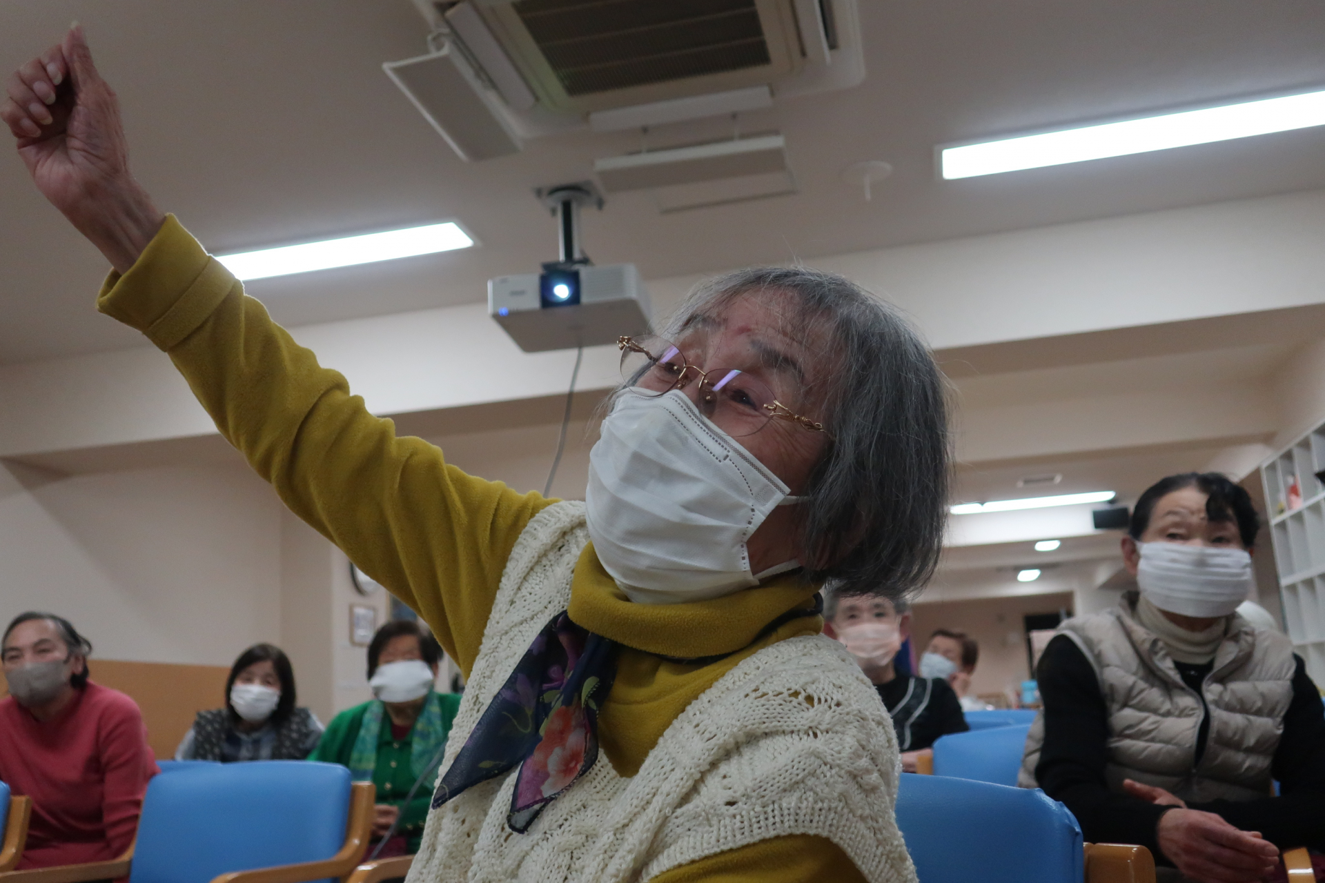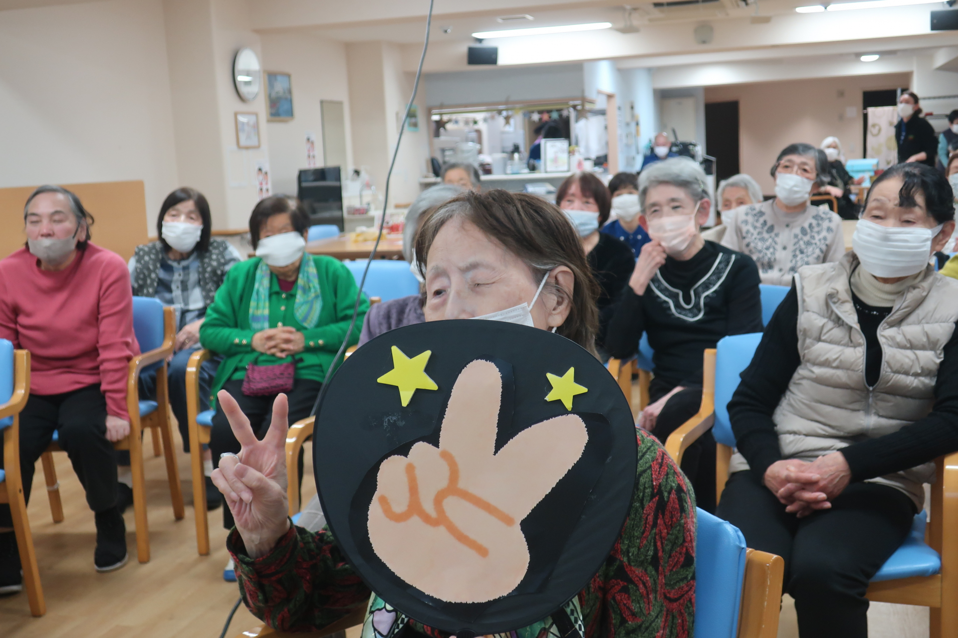 オンラインで繋いで実施する事で、日頃は1事業所内で実施して楽しんで頂いているレクリエーションを、3事業所合同で実施し、楽しさを共有して頂く試みとなっています。