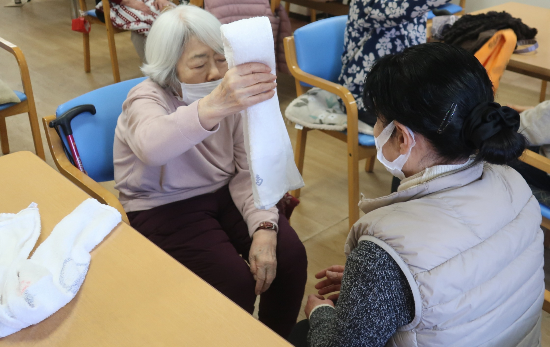 本日の午後の個別レクのタオル体操をご紹介致します。